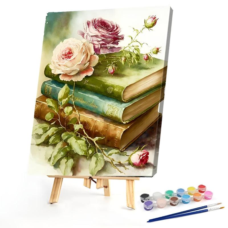 Flowers And Books Paint By Numbers Acrylic Painting Kit