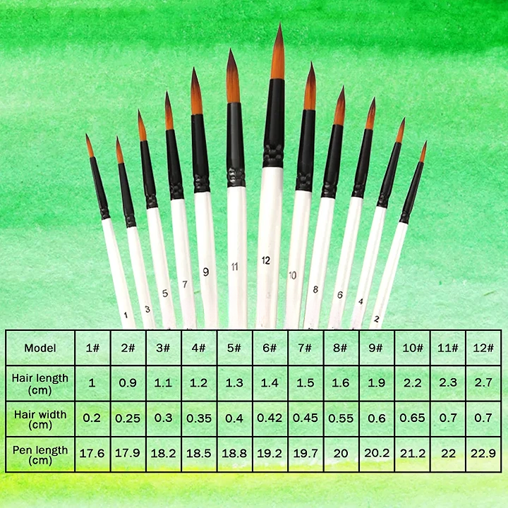 Enhance your artistic projects with the 12 Piece Watercolor Brush Set, designed for precision and versatility. Featuring high-quality nylon fiber bristles, these brushes offer excellent paint retention and elasticity, making them ideal for detailed work and broad strokes. The lacquered wooden handle provides a smooth texture and comfortable grip, ensuring ease during extended painting sessions.