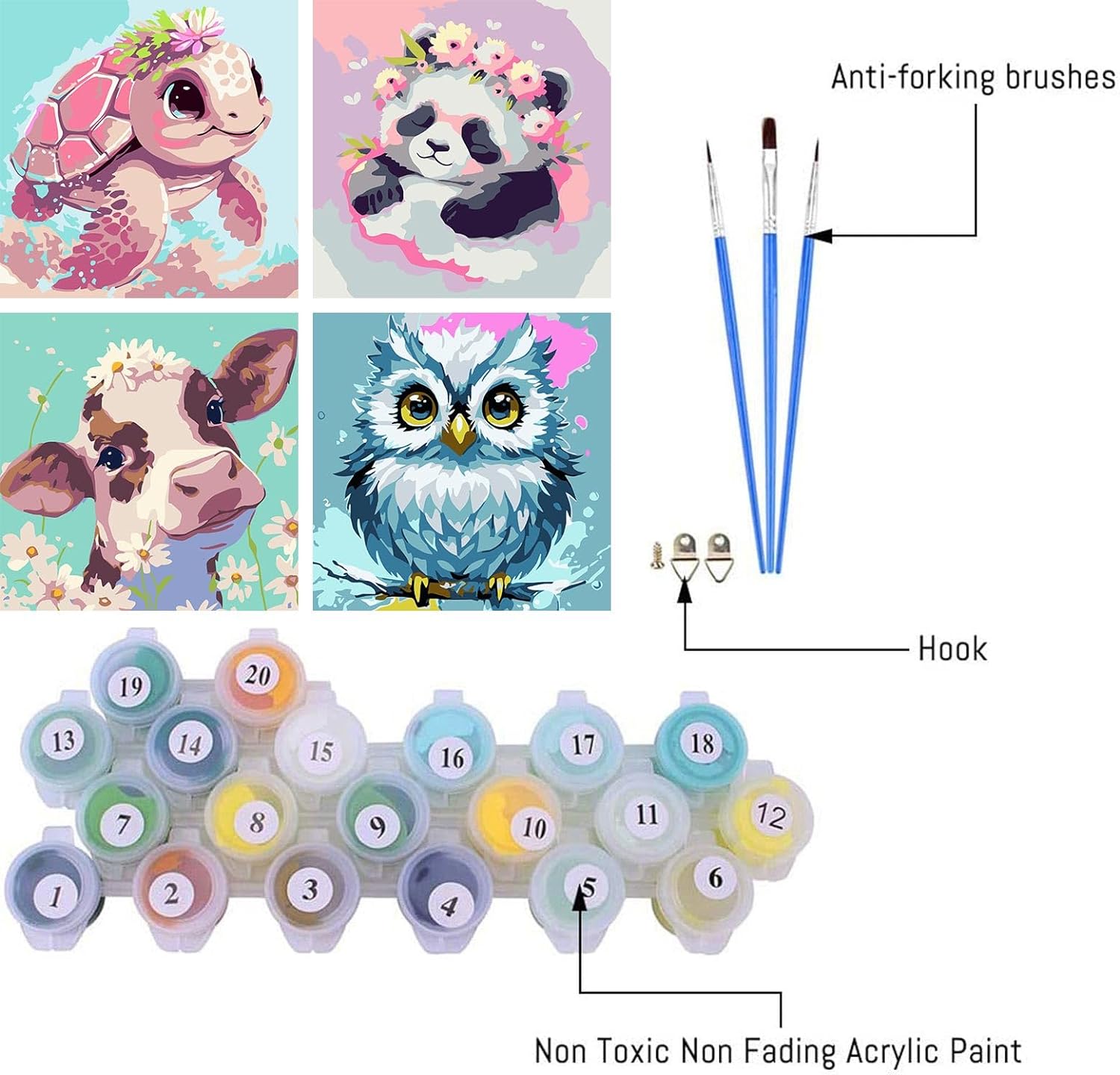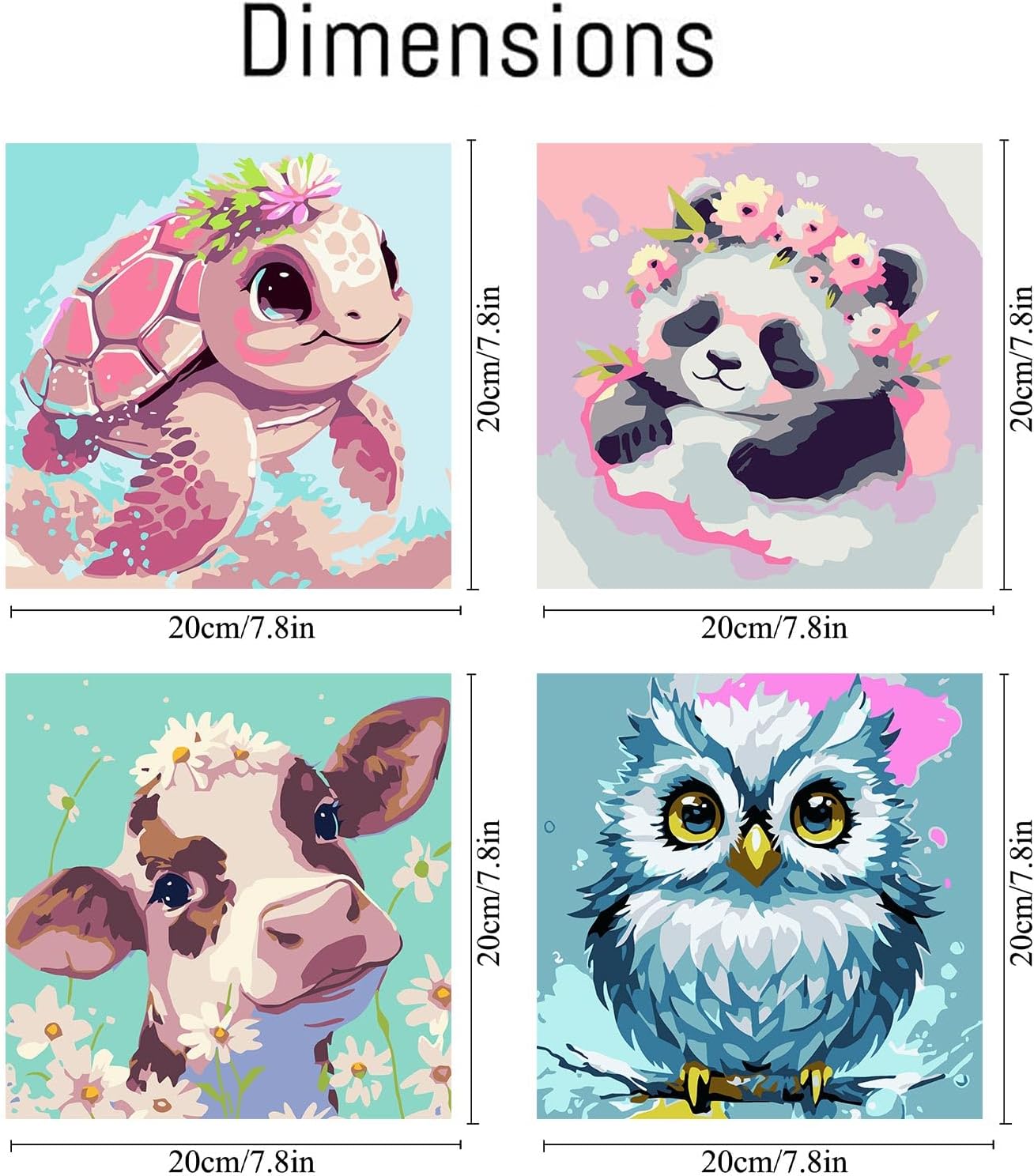 Our 4 Piece Animals Paint By Numbers Kit captures the essence of wildlife through a vibrant set of four canvas prints. Each illustration is filled with personality and charm, portraying animals in a playful yet elegant style. The lively color palettes and whimsical designs make these prints a joyful addition to any space that could use a splash of cheer and color.