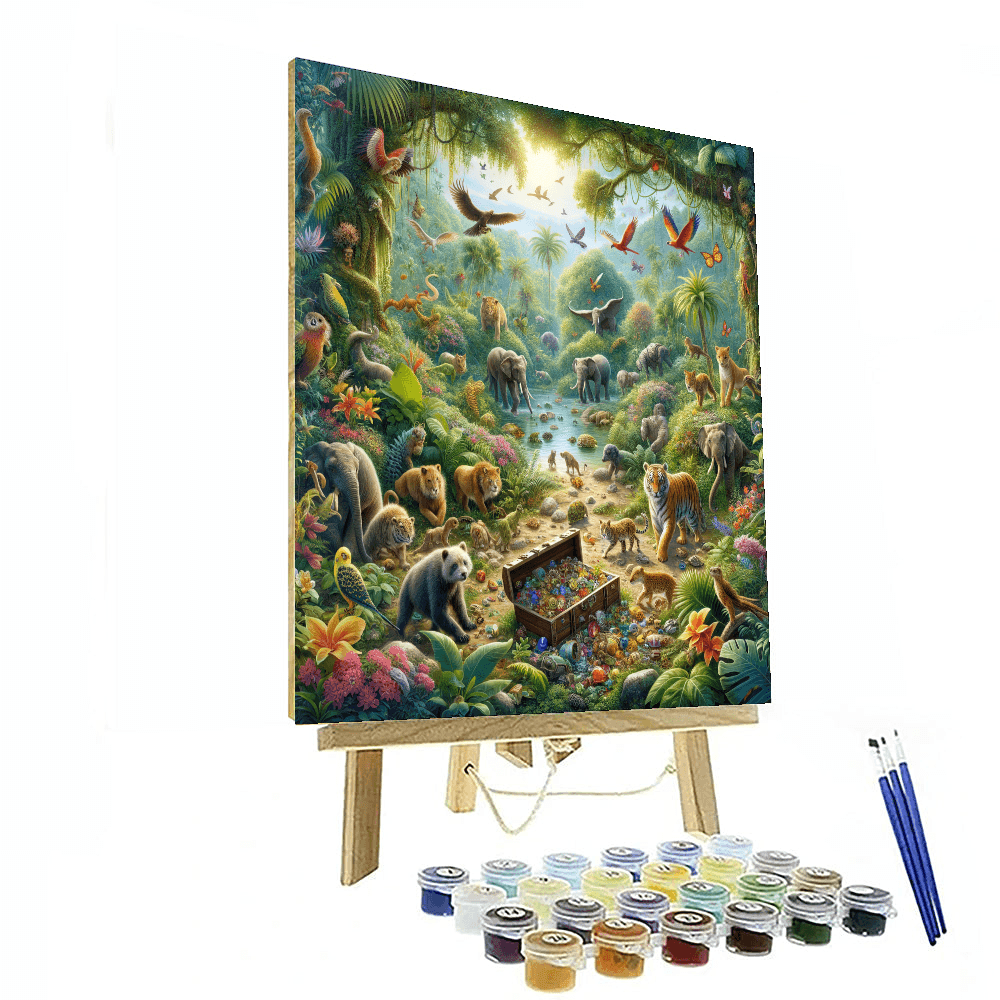 Embark on an exciting journey through the jungle with this vibrant expedition scene. Featuring colorful animals, lush vegetation, and hidden treasures, this artwork captures the essence of wildlife exploration. The bright colors and dynamic details make it perfect for childrens rooms, playrooms, or any space that inspires curiosity. Let your creativity flow as you fill in the details of this adventurous jungle, bringing the wonders of nature into your home.
