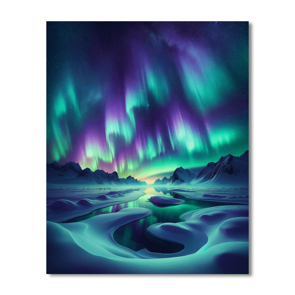 Arctic Aurora captures the mesmerizing beauty of the Northern Lights over a snowy Arctic landscape. This artwork is perfect for those fascinated by natural phenomena and dramatic landscapes, suitable for a living room or a study. It not only offers a visually stunning representation of one of natures most spectacular displays but also provides an engaging and rewarding project, resulting in a piece that can transform any space into a window to the natural world.