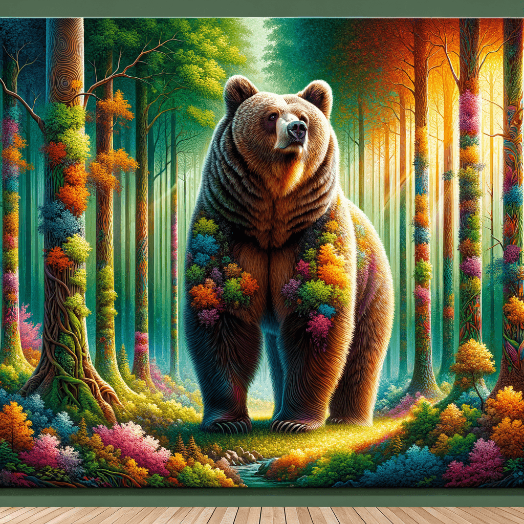 This enchanting design features a bear amidst a lush forest, perfect for nature lovers and wildlife enthusiasts. The warm earthy tones and vibrant greens create a harmonious balance, making it a delightful addition to a study or childrens room. This piece encourages creativity and appreciation for wildlife, making it an excellent choice for families looking to inspire their children. Its captivating imagery is sure to spark conversations and bring a touch of the wild into your home.