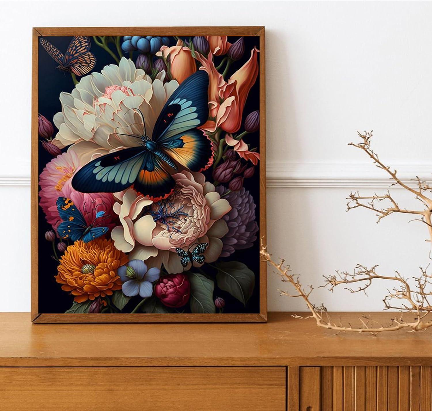 - Design: The artwork is composed of a rich, dark background against which the bright colors of the flowers and butterflies stand out.