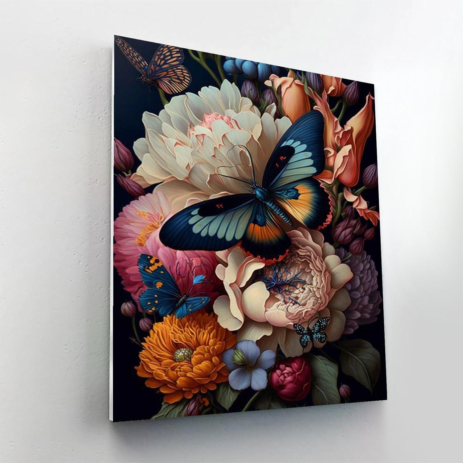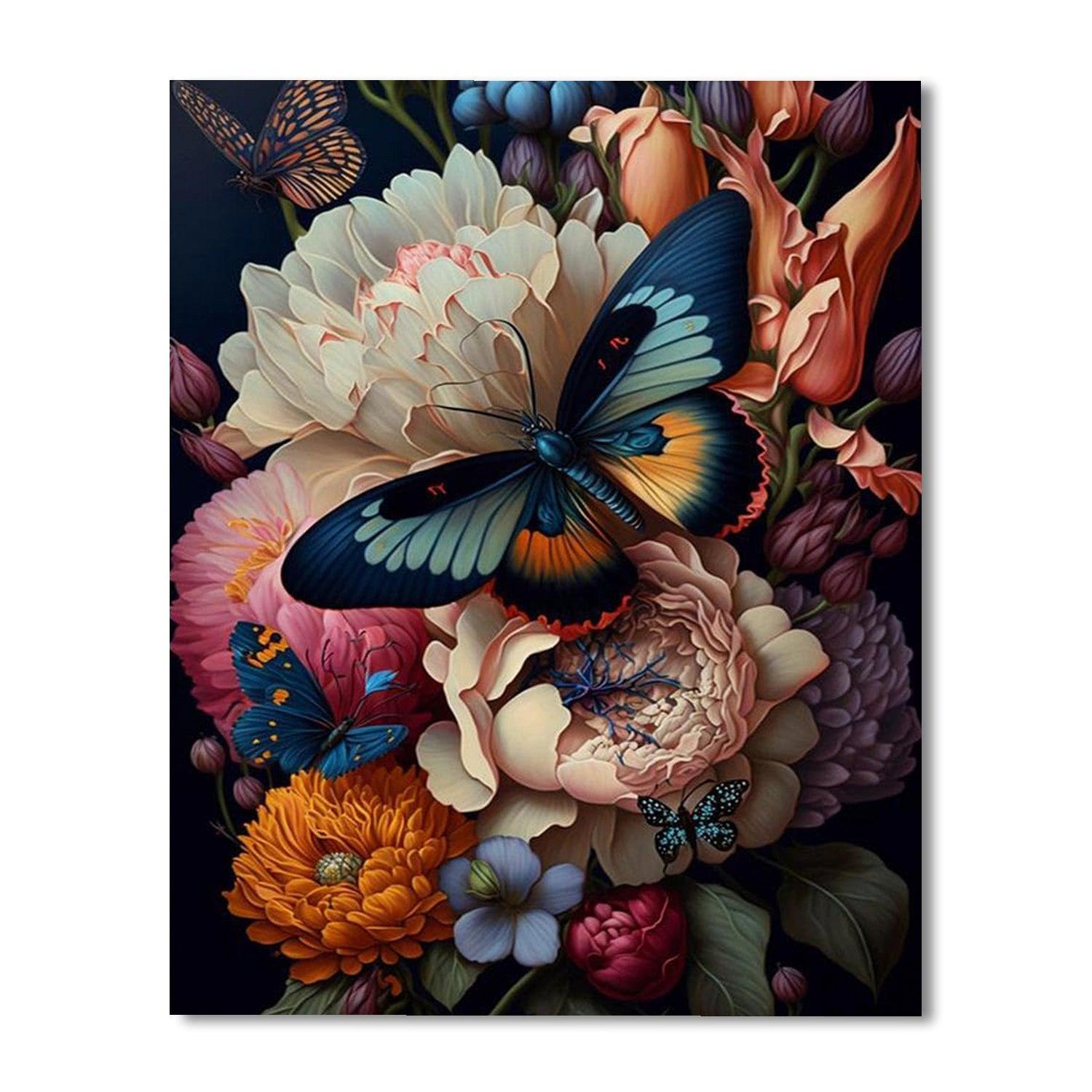 Unveil a canvas where midnight hues dance with vibrant florals in our Bloom and Butterflies Paint By Number Kit. Perfect for those who adore the natural elegance of nocturnal flowers and the delicate beauty of butterflies, this set promises a mesmerizing artistic journey.