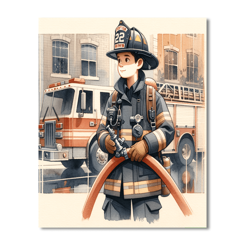 Celebrate the heroes in our community with the Brave Firefighter kit. This product features a courageous firefighter in uniform, holding a hose and standing in front of a fire truck. Perfect for kids who admire firefighters and dream of becoming one, this kit can be a great addition to a childs bedroom or playroom.