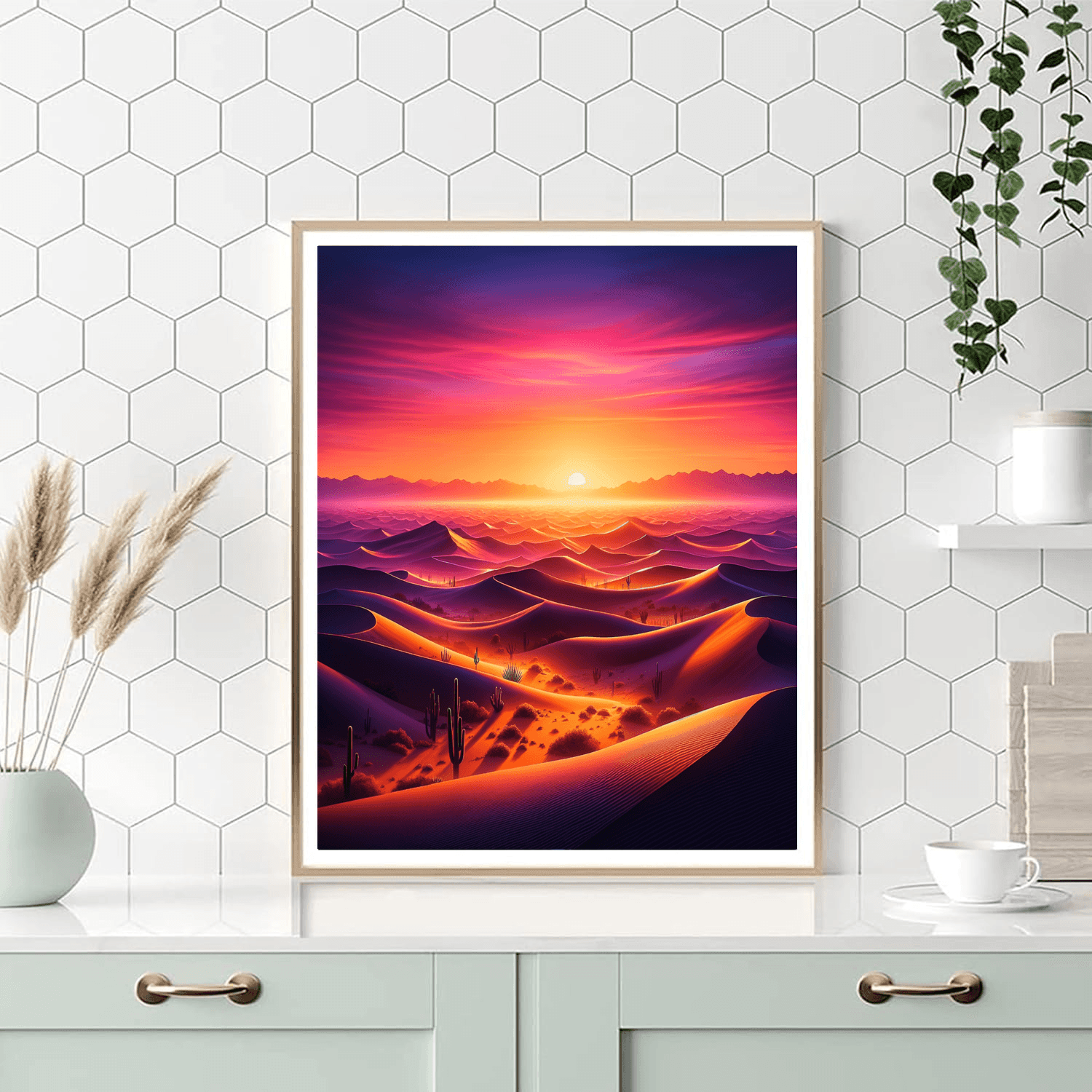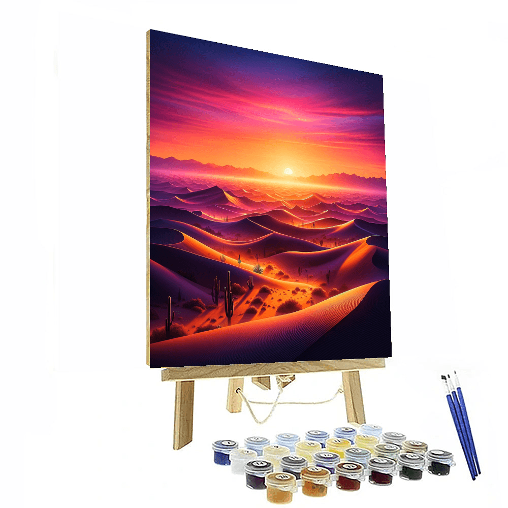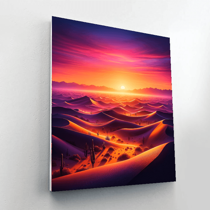 Experience the beauty of the desert with this breathtaking sunset scene. Perfect for adding warmth to a living room or study, it captures the essence of natures tranquility. This product also makes a thoughtful gift for anyone who loves the desert landscape. Let your creativity flow as you fill in the details of this stunning sunset.