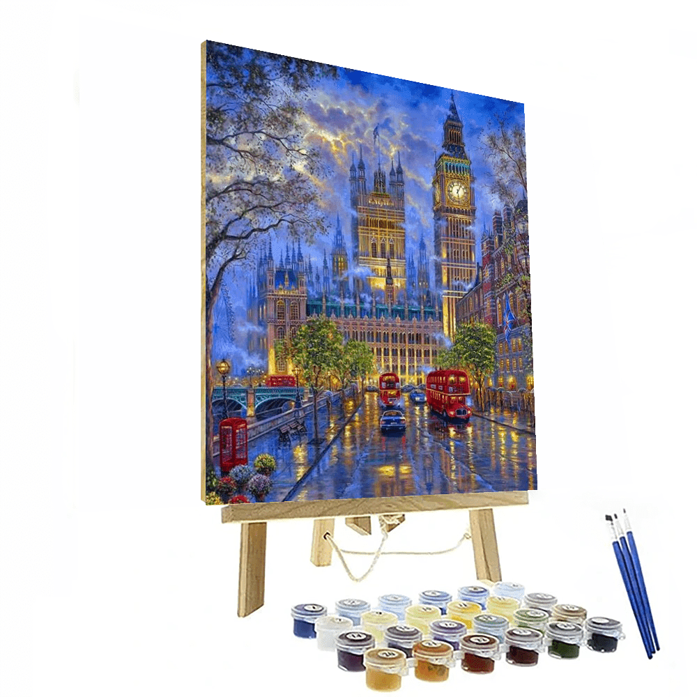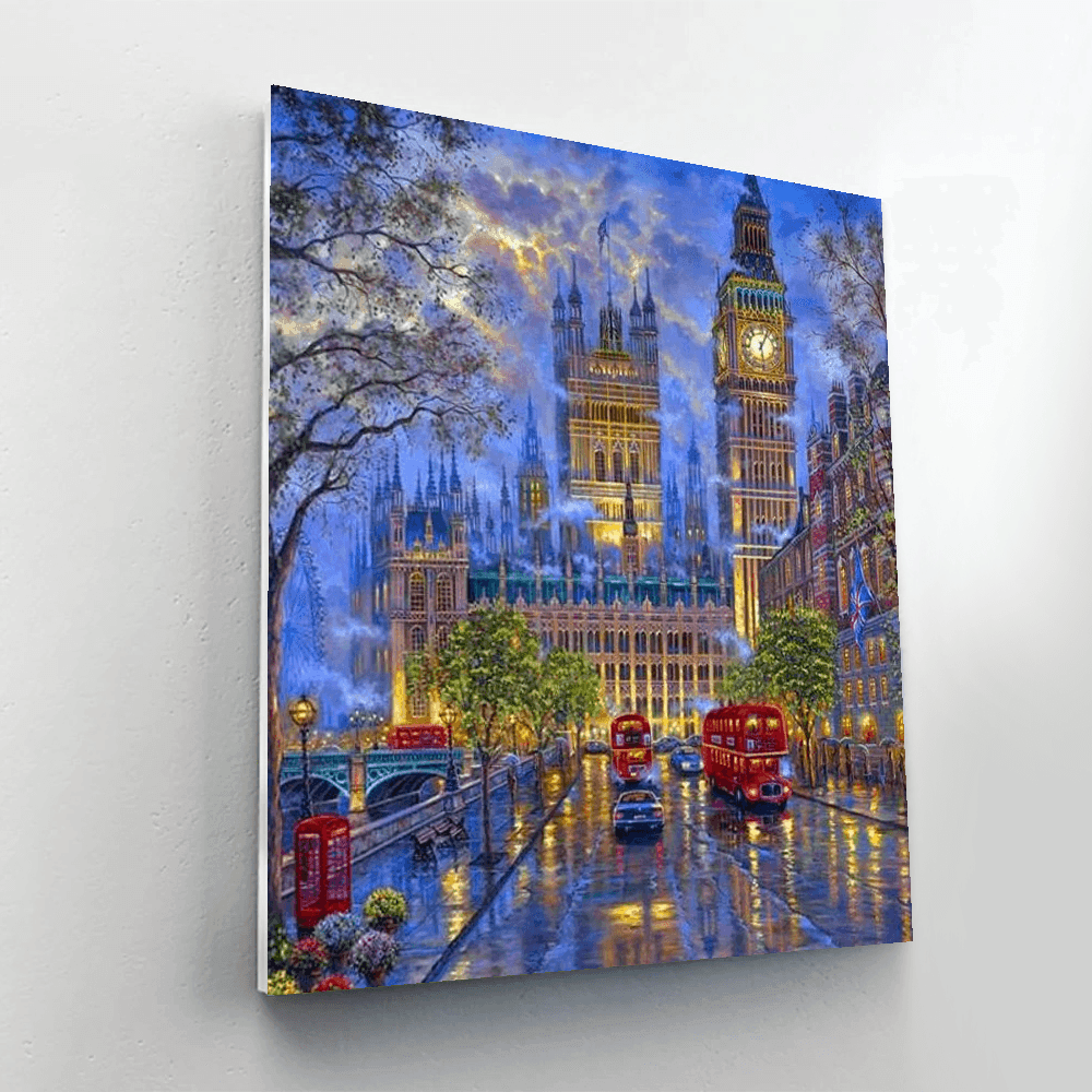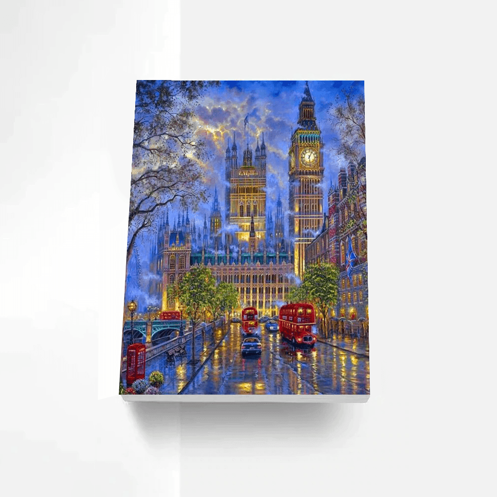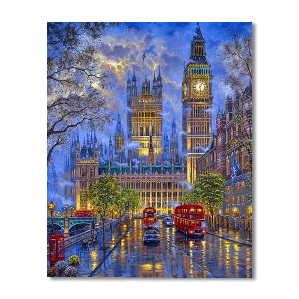 British London Night Paint By Numbers Painting Kit comes with all the materials you need to paint a British London nightscape. All you need is a surface to paint on, such as canvas, and you're ready to go. Included in the kit are a detailed, full-color painting guide, canvas, artist-quality acrylic paints, and paintbrushes. The guide includes step-by-step instructions and helpful tips for beginners. There are also extra details about the painting, such as where to find the buildings and landmarks featured in the picture.