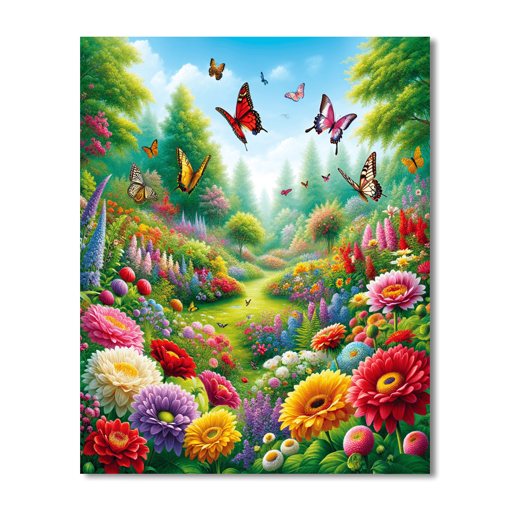 A vibrant scene of a garden filled with colorful butterflies and blooming flowers, perfect for adding a touch of nature to a childs bedroom or playroom.