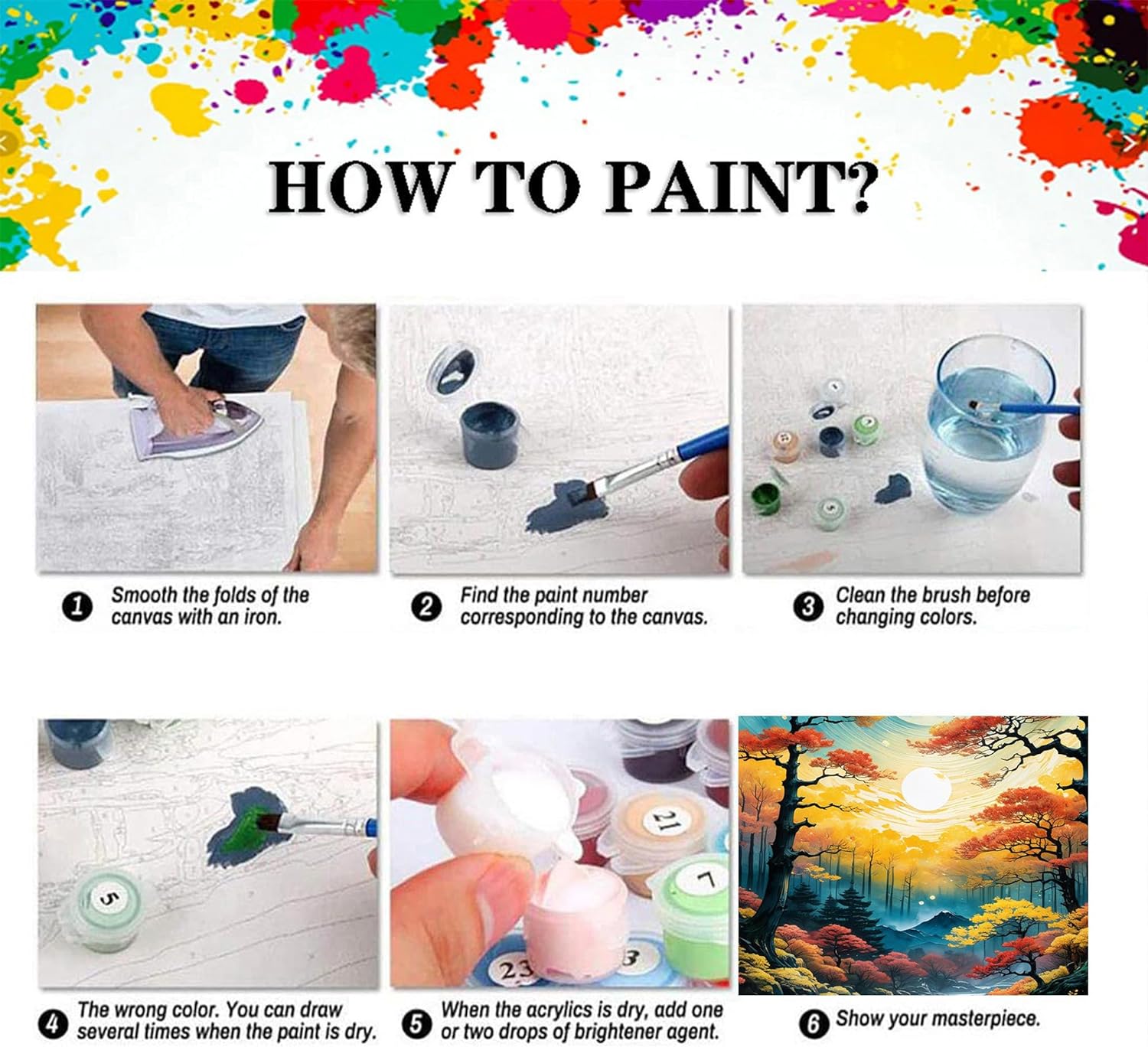 Pattern: Pre-numbered areas on the canvas match with the paints, simplifying the artistic process.