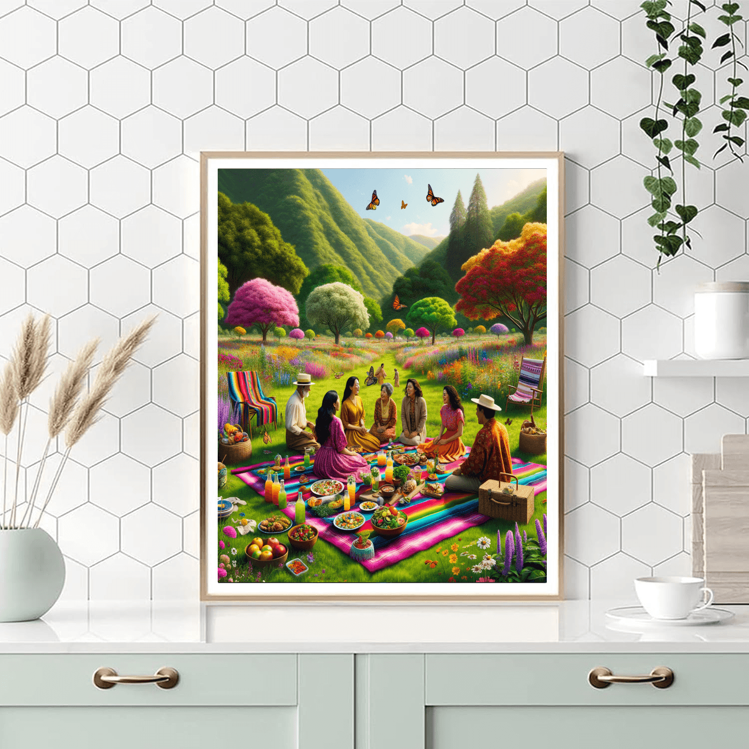 Celebrate the joys of outdoor gatherings with this charming product that captures the essence of a delightful picnic in the countryside. Featuring colorful blankets, delicious food, and cheerful company, it invites you to enjoy the beauty of nature. Perfect for families and friends, this item adds a lively touch to any space. Ideal for a dining room, kitchen, or living room, it creates a cheerful atmosphere that encourages togetherness and joy.