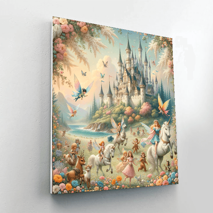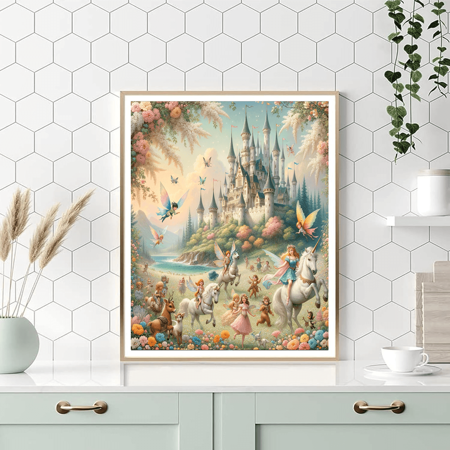 Delight in the magic of a fairy tale with this charming design featuring whimsical characters and enchanting landscapes. Perfect for childrens bedrooms or play areas, this artwork inspires imagination and joy.
