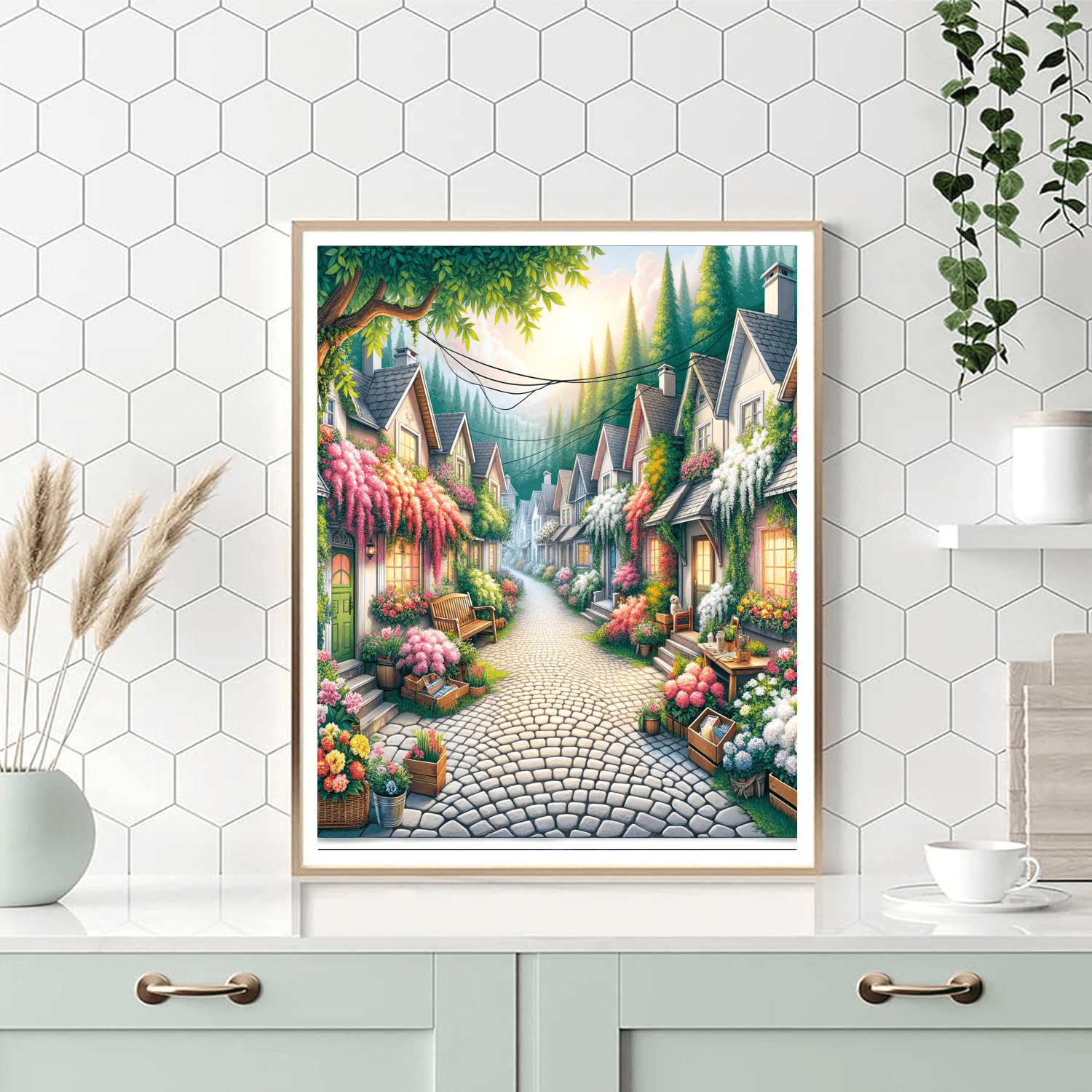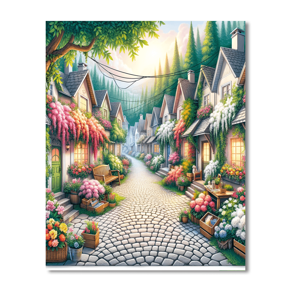 Transport yourself to a quaint village with this delightful design featuring a charming street lined with colorful houses and blooming gardens. This artwork captures the essence of community and warmth, making it perfect for anyone who loves the beauty of small towns. Ideal for a living room, office, or any space where you want to evoke a sense of nostalgia and charm.