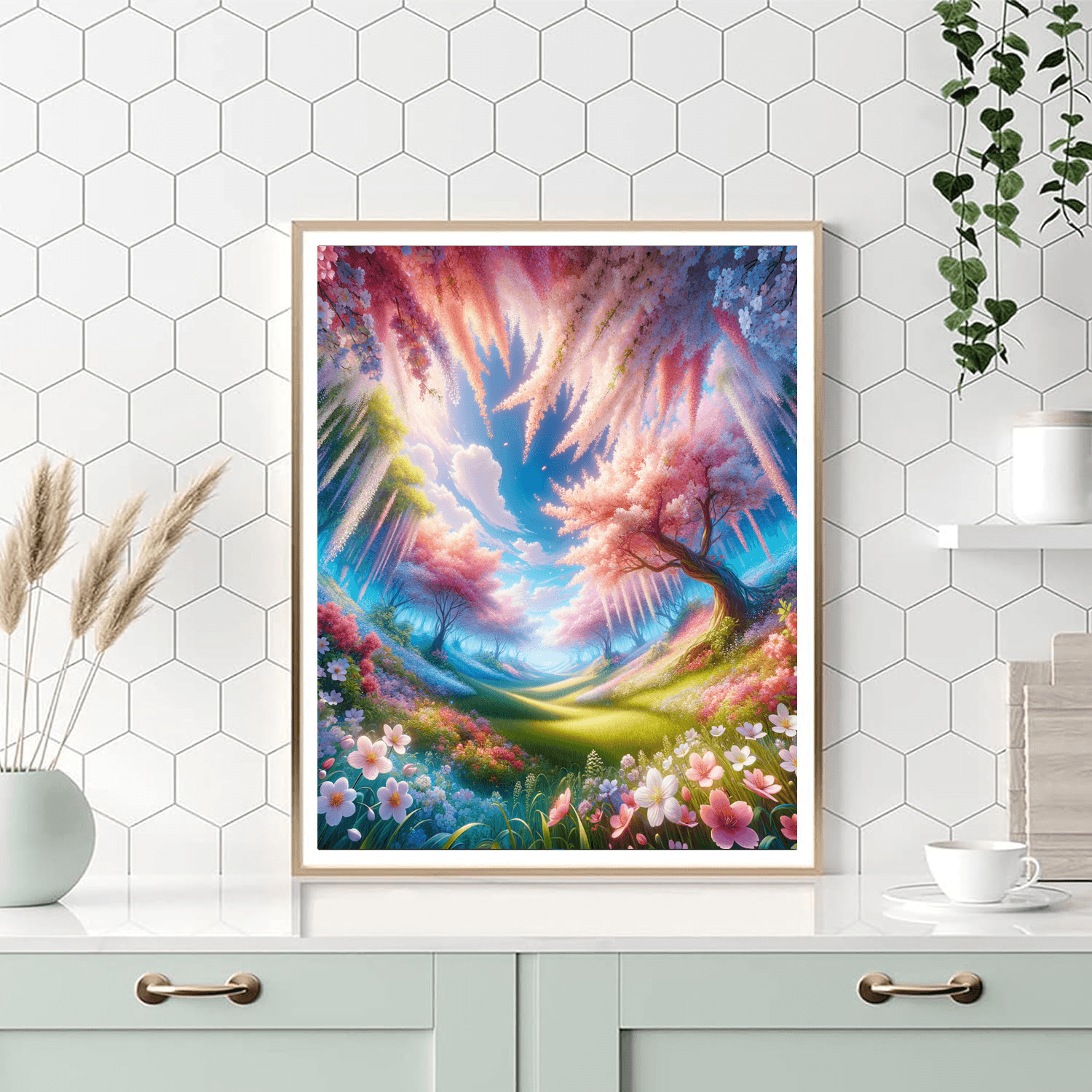 Celebrate the beauty of spring with this stunning depiction of a cherry blossom festival. Perfect for a living room or bedroom, this piece captures the delicate and ephemeral beauty of cherry blossoms in full bloom, creating a serene and uplifting atmosphere.