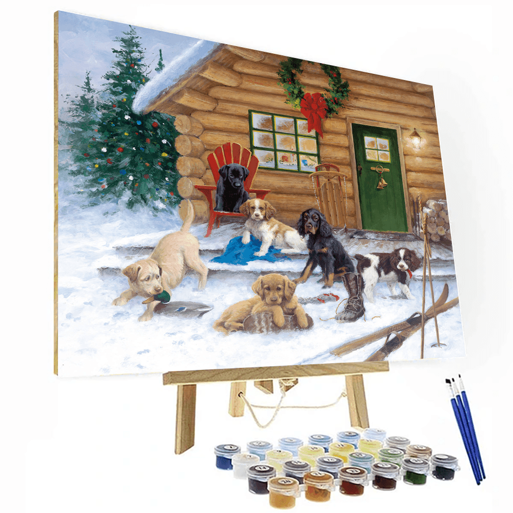 Christmas At The Cabin painting that can be used in your house, in studios and kids bedroom etc. . With a combination of details and a pop of color, this painting will make you seem like a true artist. Bring out your inner artist and play with these vibrant colors to create something beautiful.