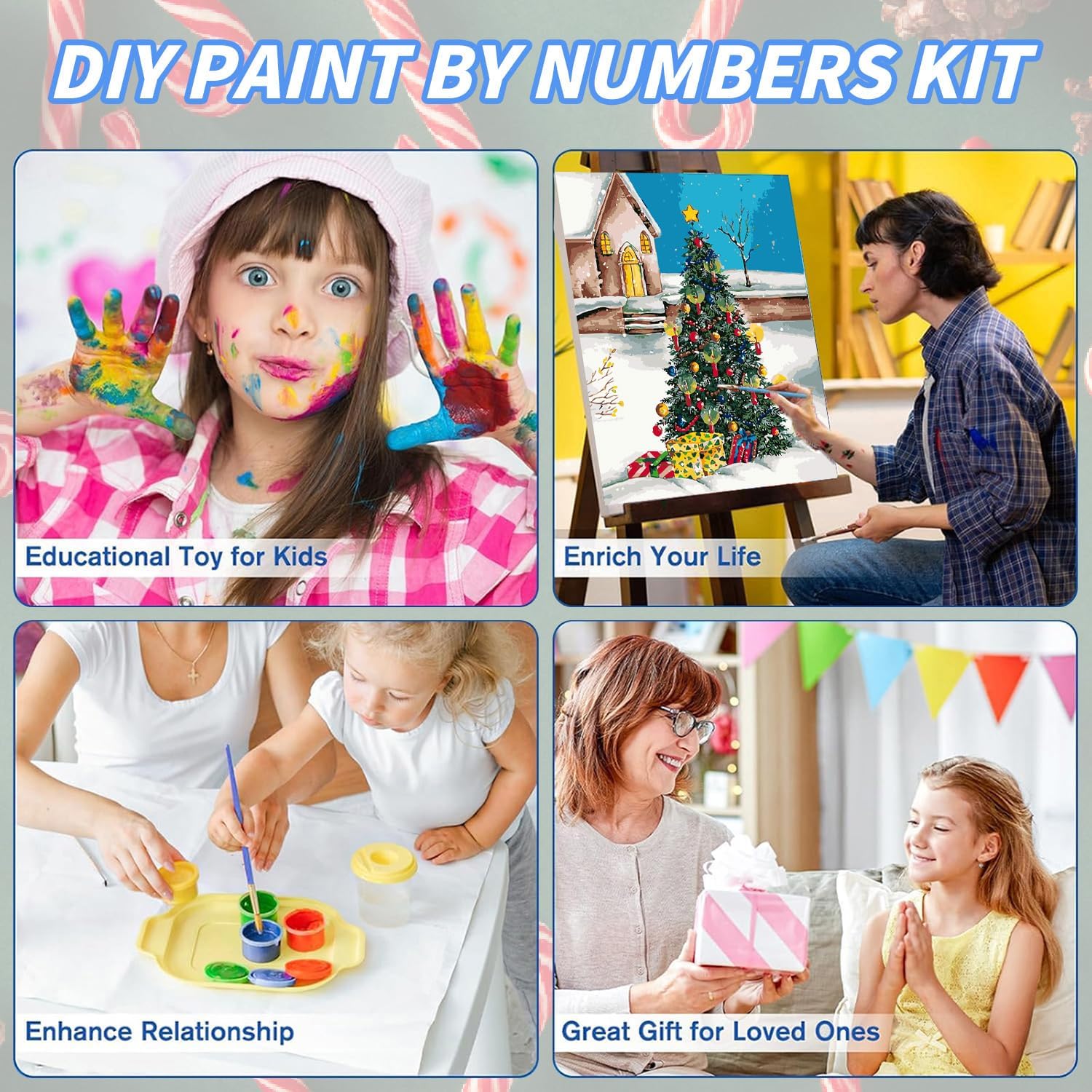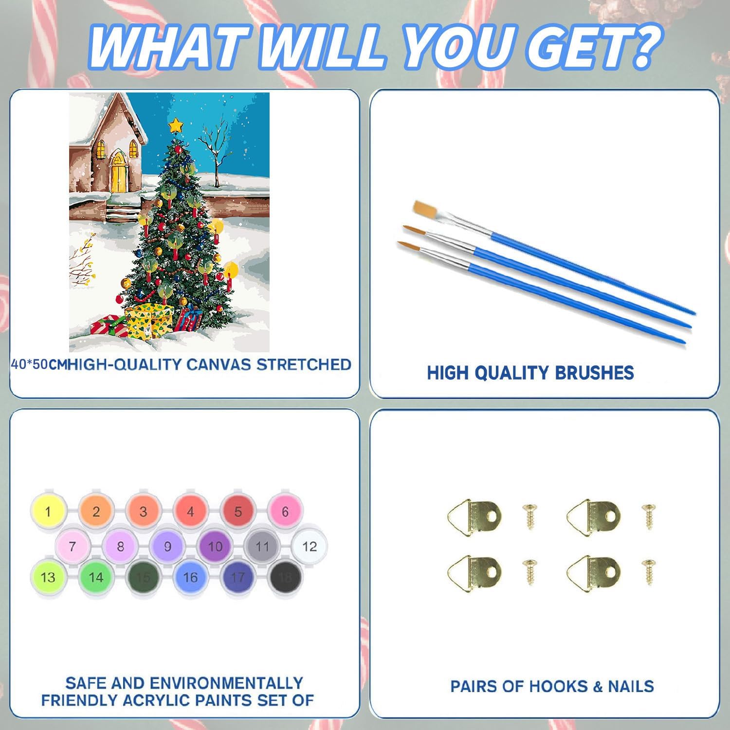 The Christmas Tree Paint By Numbers Kit provides everything needed to create a festive artwork, including a pre-printed 16x20-inch canvas, acrylic paints, three paintbrushes, metal hooks, and a color guide for reference. Designed for artists of all levels, the numbered canvas allows for easy and enjoyable painting without the need for blending. The high-definition canvas and quality brushes ensure smooth, precise strokes. Ideal for holiday decor or as a thoughtful gift, this kit offers a fun and creative activity for the festive season.