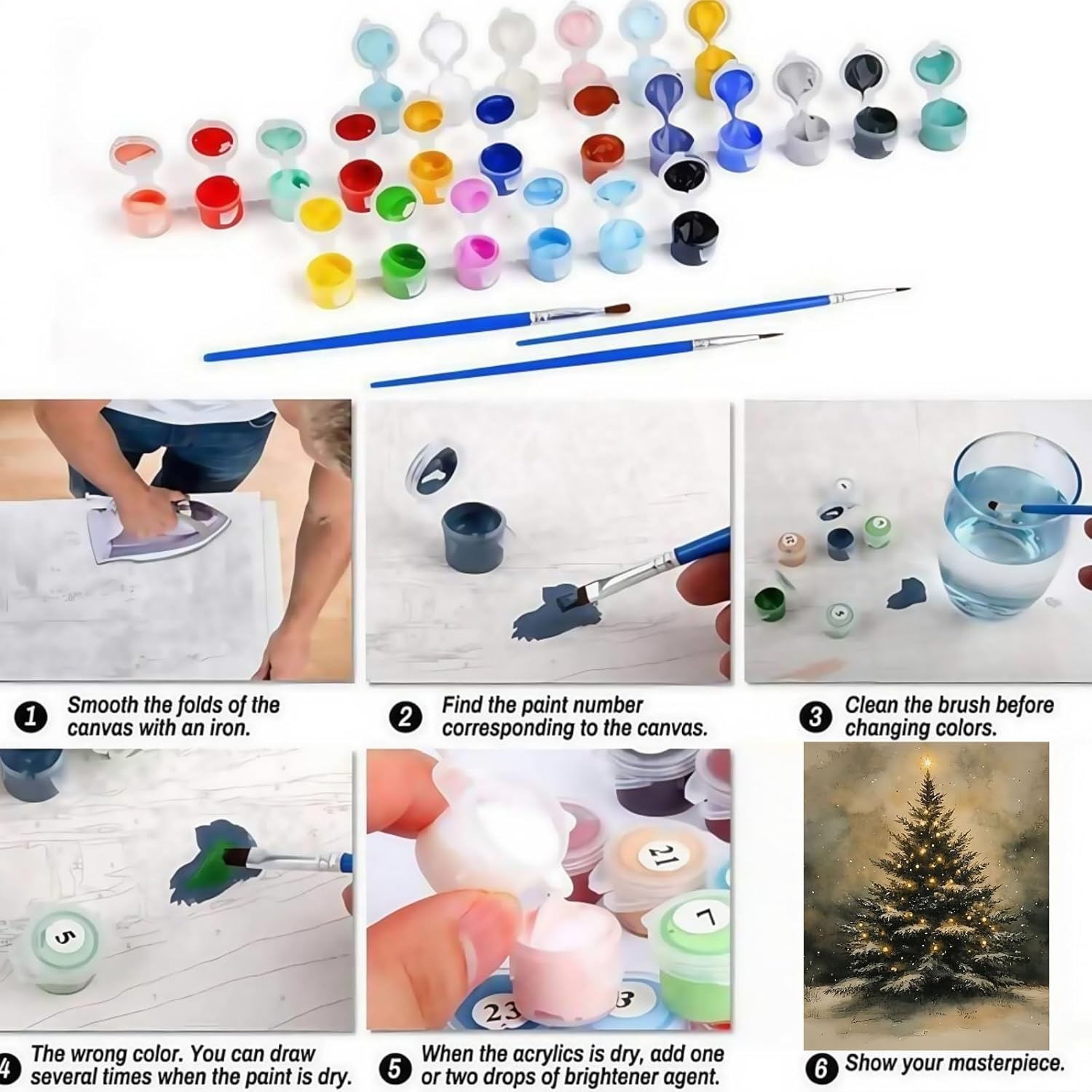 This Christmas tree painting kit offers a simple and guided approach to seasonal creativity. Each numbered section provides direction, helping beginners and adults complete an elegant winter scene without confusion. The vivid acrylic paints blend well, allowing each part of the artwork to stand out.
