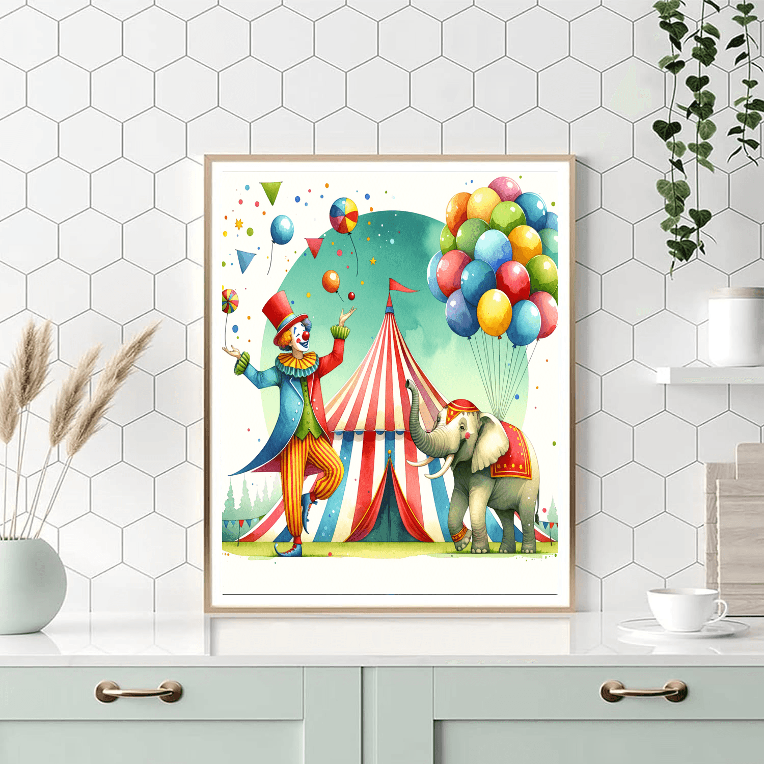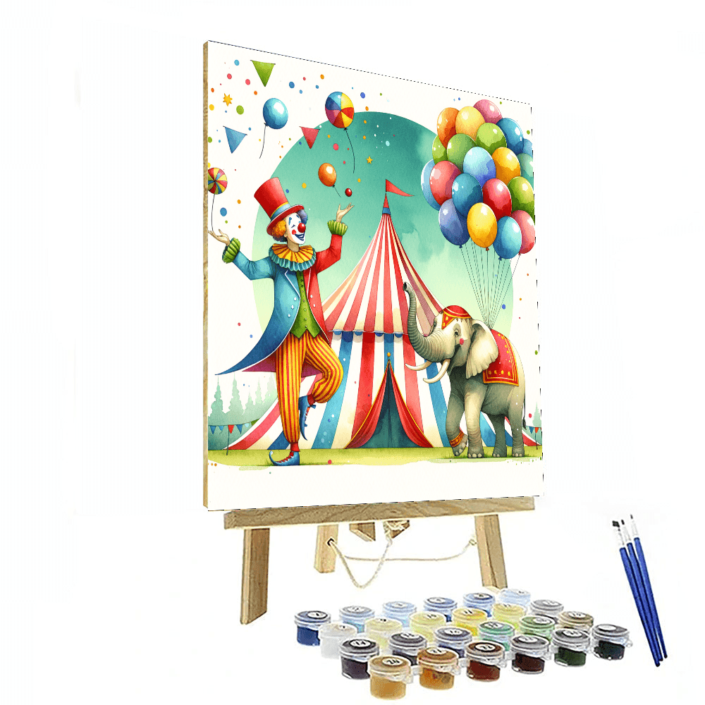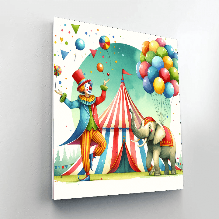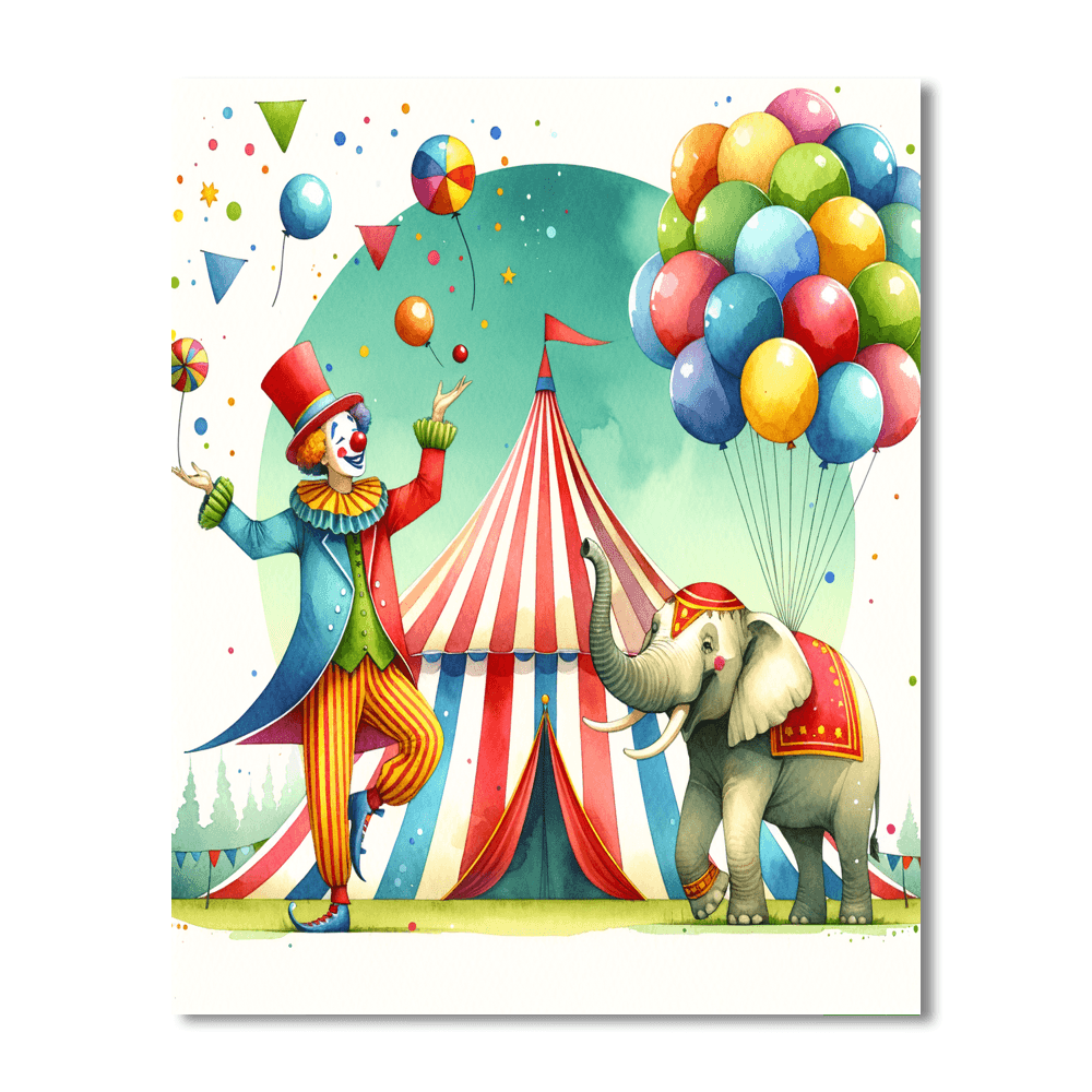 Step right up to the Circus Fun Time painting kit, where the excitement of the big top comes to life. This vibrant kit allows children to paint a lively circus scene featuring a juggling clown, a performing elephant, and a colorful tent. The playful atmosphere and bright colors capture the joy and wonder of the circus. Perfect for young entertainers, this painting can be displayed in a playroom or family room, adding a touch of fun and excitement to any space.