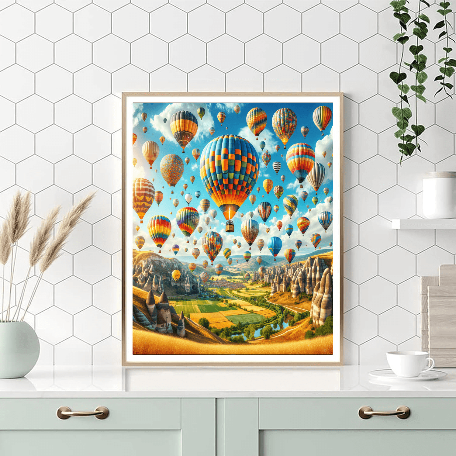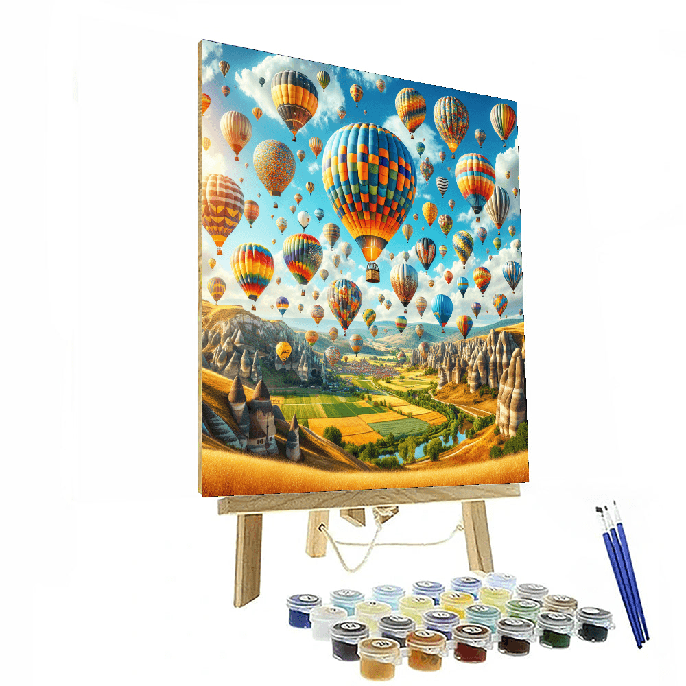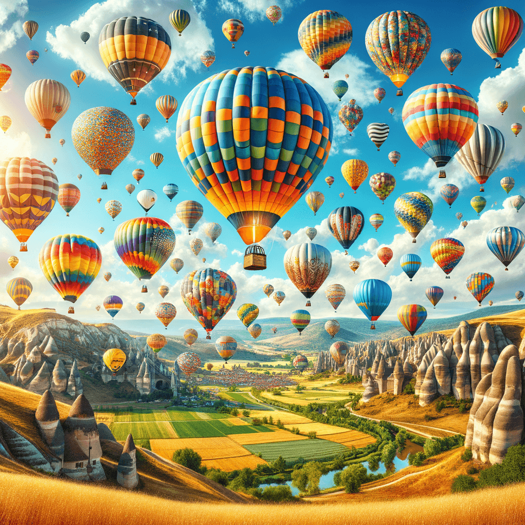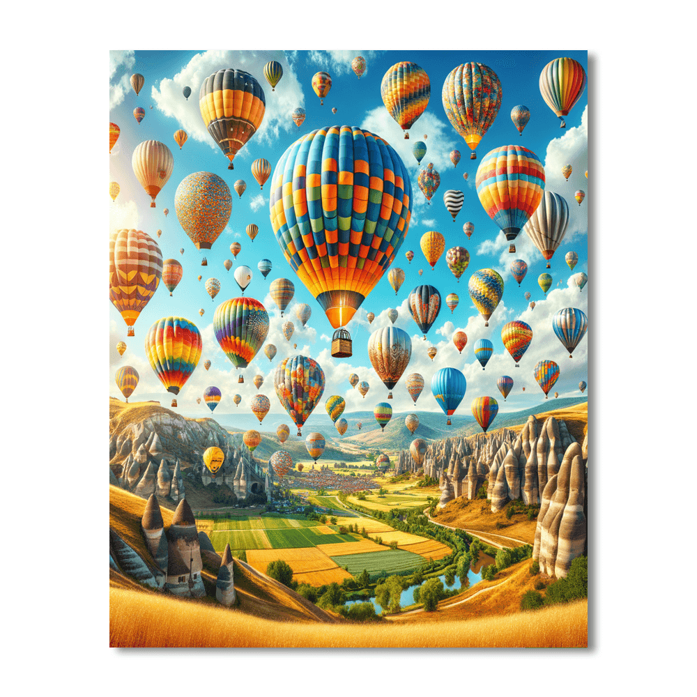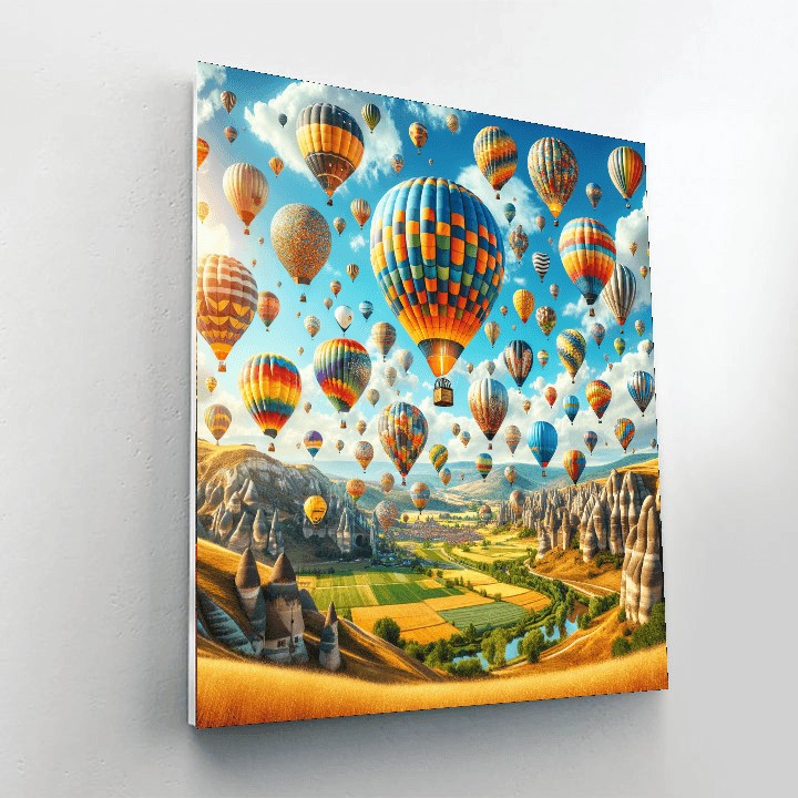 Celebrate the joy of flight with this vibrant design featuring a sky filled with colorful hot air balloons soaring high above the landscape. This piece is perfect for a childs bedroom or a playful living room, bringing a sense of adventure and excitement into your home. The lively colors and whimsical imagery inspire creativity and happiness, making it a delightful addition to any space that celebrates the joy of exploration.
