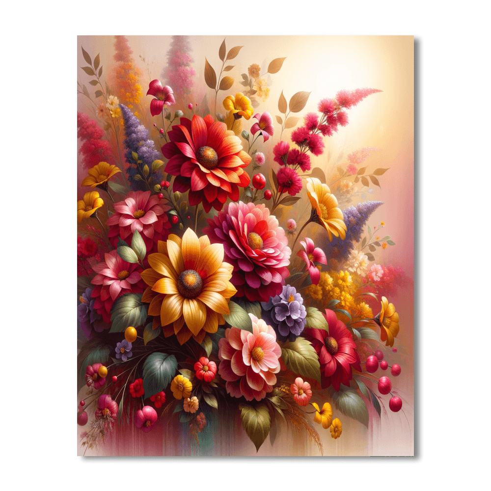 Embrace the beauty of nature with this vibrant depiction of a harmonious floral arrangement. This piece is perfect for adding a touch of elegance to your living room or dining area. The lively colors and intricate details will inspire admiration and joy, making it an ideal choice for anyone who loves flowers.