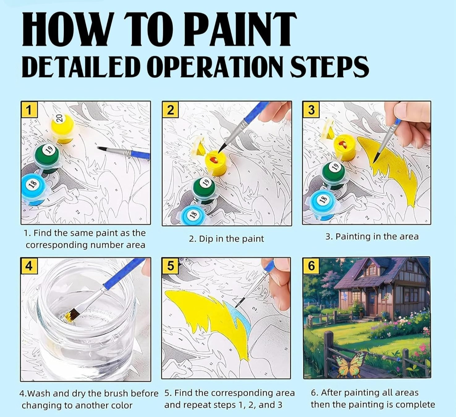 Bring the tranquil essence of a dusky garden retreat into your home with our Cottage Garden Paint By Number Kit. This artwork captures the warmth of a setting sun as it bathes a charming cottage and its flourishing garden in a soft, golden hue.