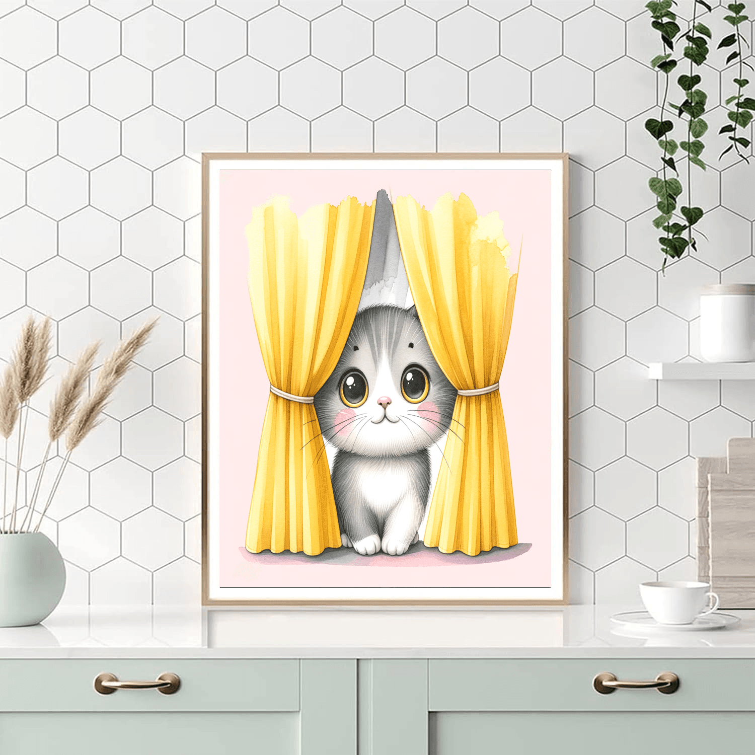 Spark curiosity with our Curious Cat artwork. This piece features a mischievous cat peeking out from behind a curtain, its eyes wide with wonder. Its a wonderful way to encourage a love for animals and playful exploration. Perfect for a nursery or child’s playroom, it adds a whimsical touch while providing a simple and enjoyable activity for kids.