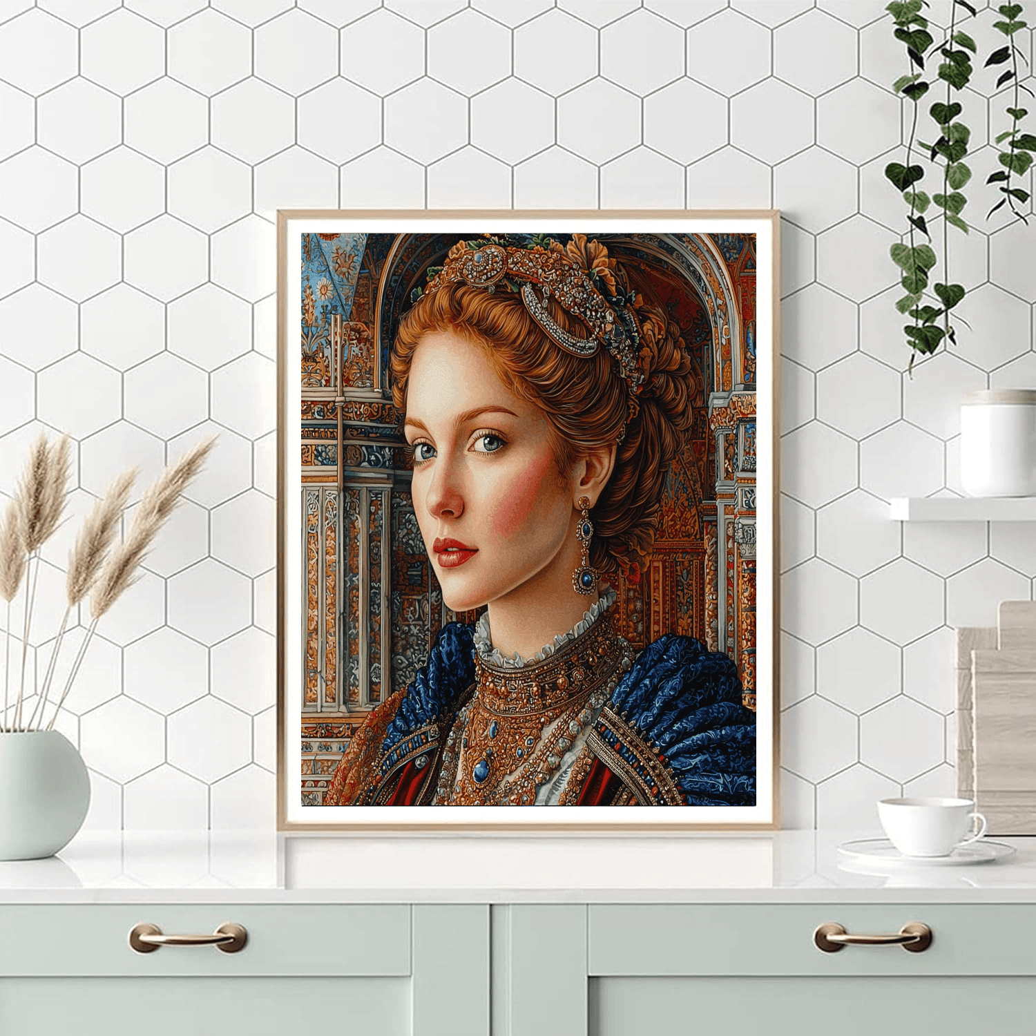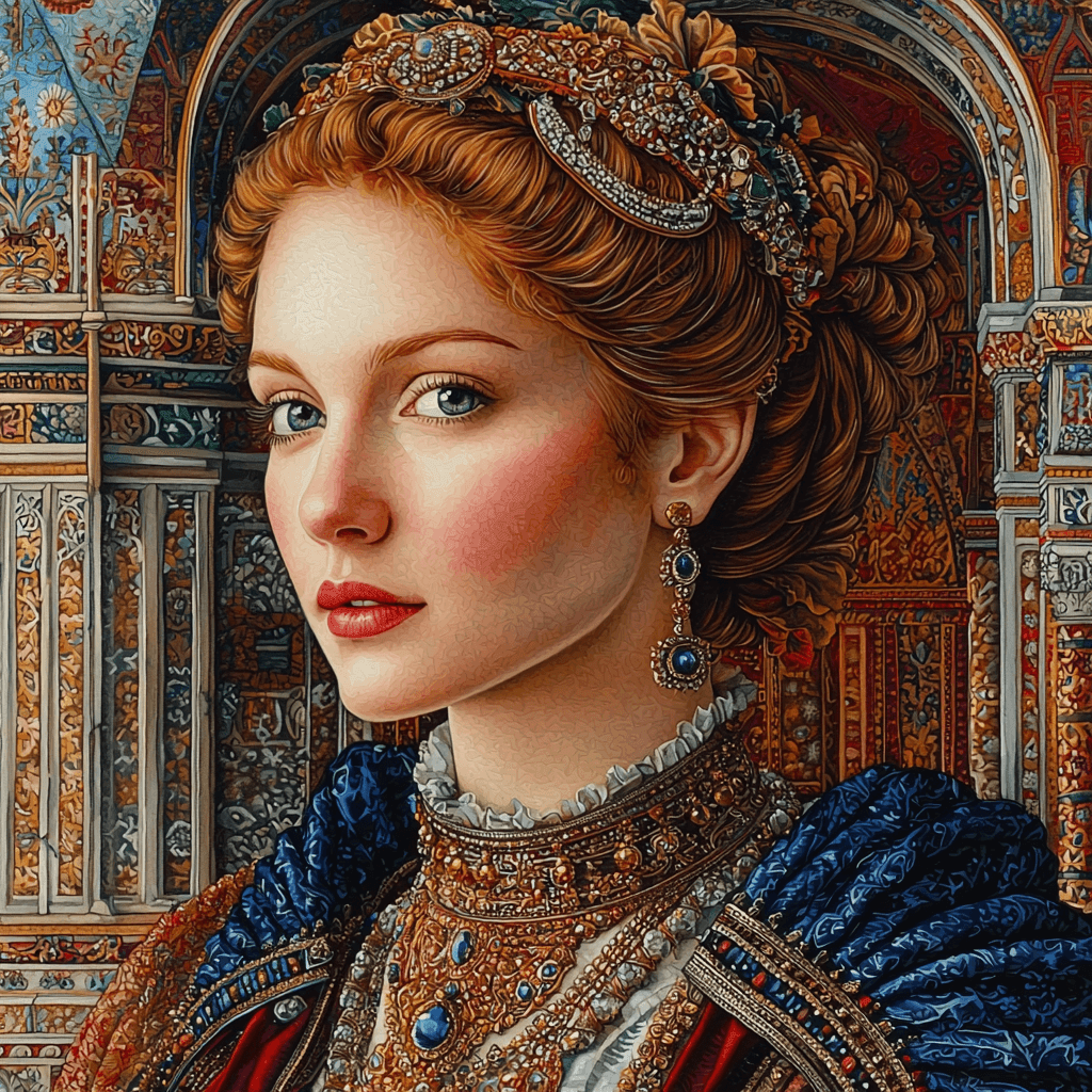 Bring a touch of classical elegance to your space with this Renaissance-style portrait. Perfect for a study or living room, it adds a sense of sophistication and refinement. The detailed rendering and rich colors create a timeless and captivating piece.