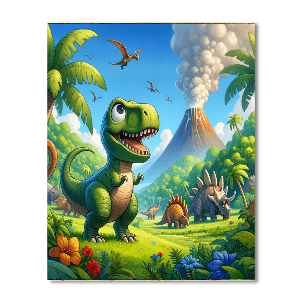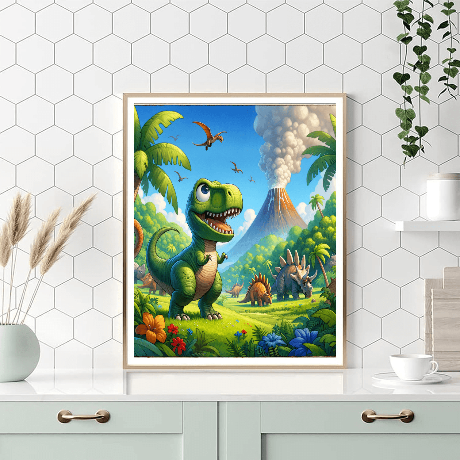 Join Timmy T-Rex on an exciting prehistoric adventure, perfect for young dinosaur enthusiasts. This kit provides a fun way to learn about different types of dinosaurs while creating a vibrant piece of art. The completed artwork is ideal for decorating a childs bedroom or a play area, making it a delightful addition to any dinosaur-themed decor.