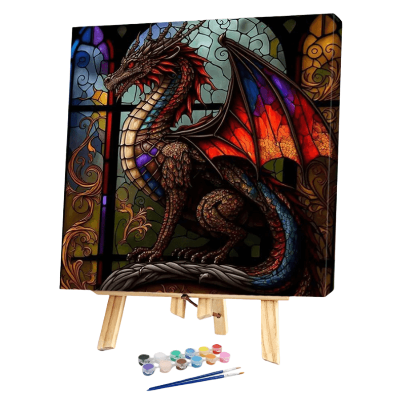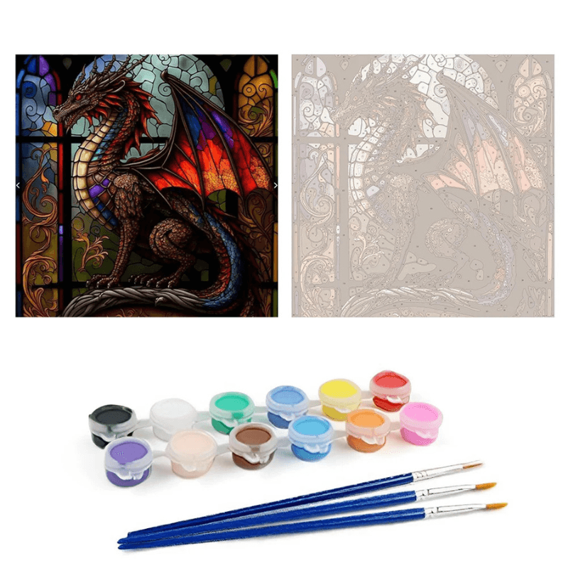 Unleash your creativity with the Dragon Design Paint By Numbers Kit, featuring a striking and detailed dragon scene. This kit includes a pre-printed pure cotton canvas with clearly marked numbers, offering an enjoyable and seamless painting experience. The vibrant, environmentally friendly acrylic paints ensure bold and rich colors that bring the majestic dragon to life. A complete set of brushes in various sizes allows for both intricate detailing and broad strokes.
