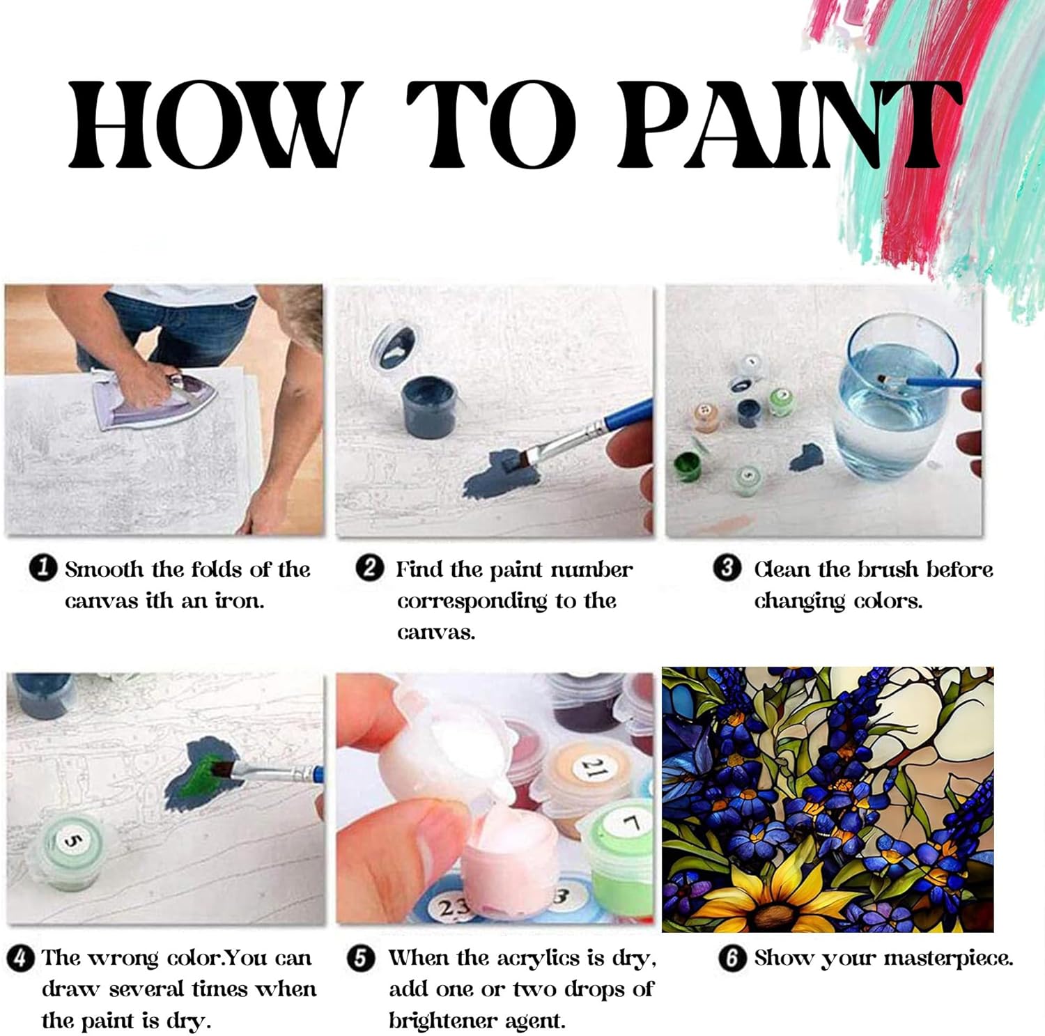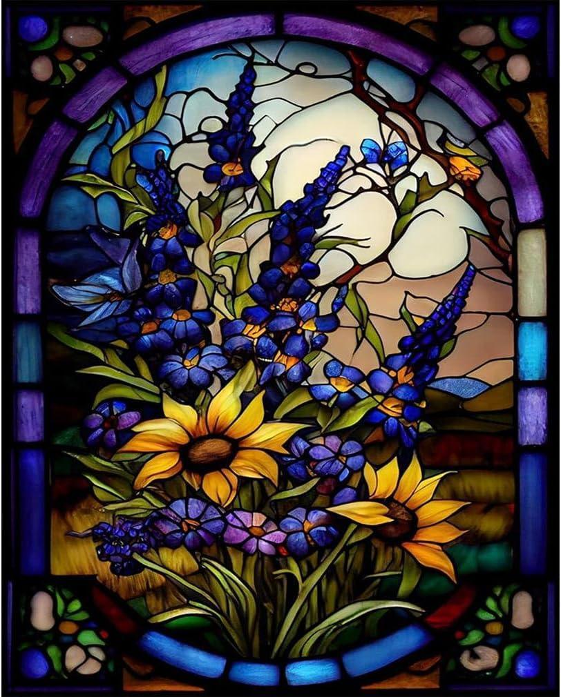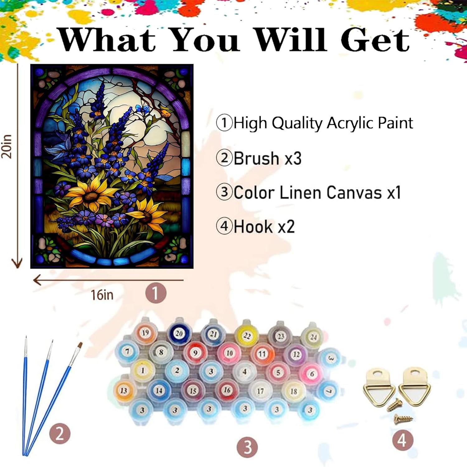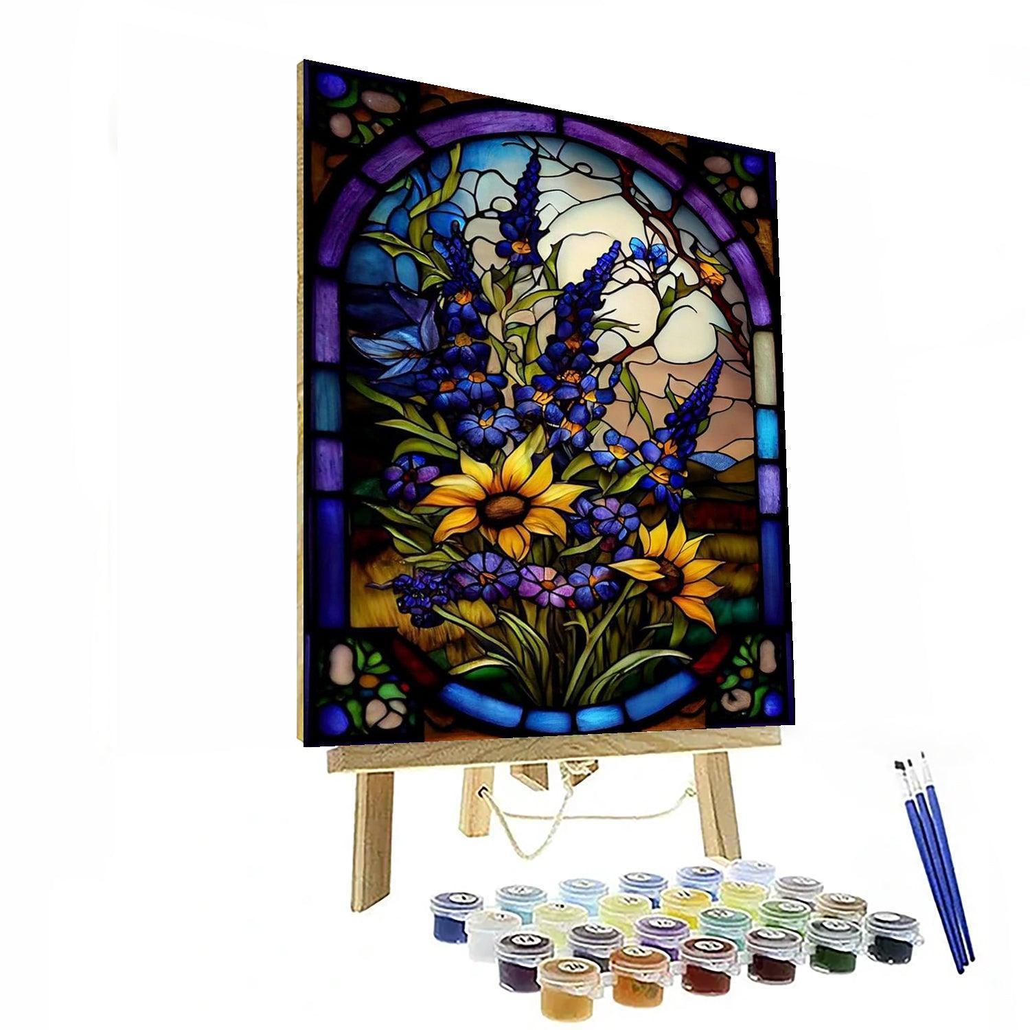 Add a splash of handcrafted charm to your walls with the Enchanted Blossom Paint By Number Kit. This artistic creation allows you to bring to life a scene reminiscent of a stained glass masterpiece, filled with deep blues, radiant yellows, and lush purples, all through the engaging process of painting by numbers.