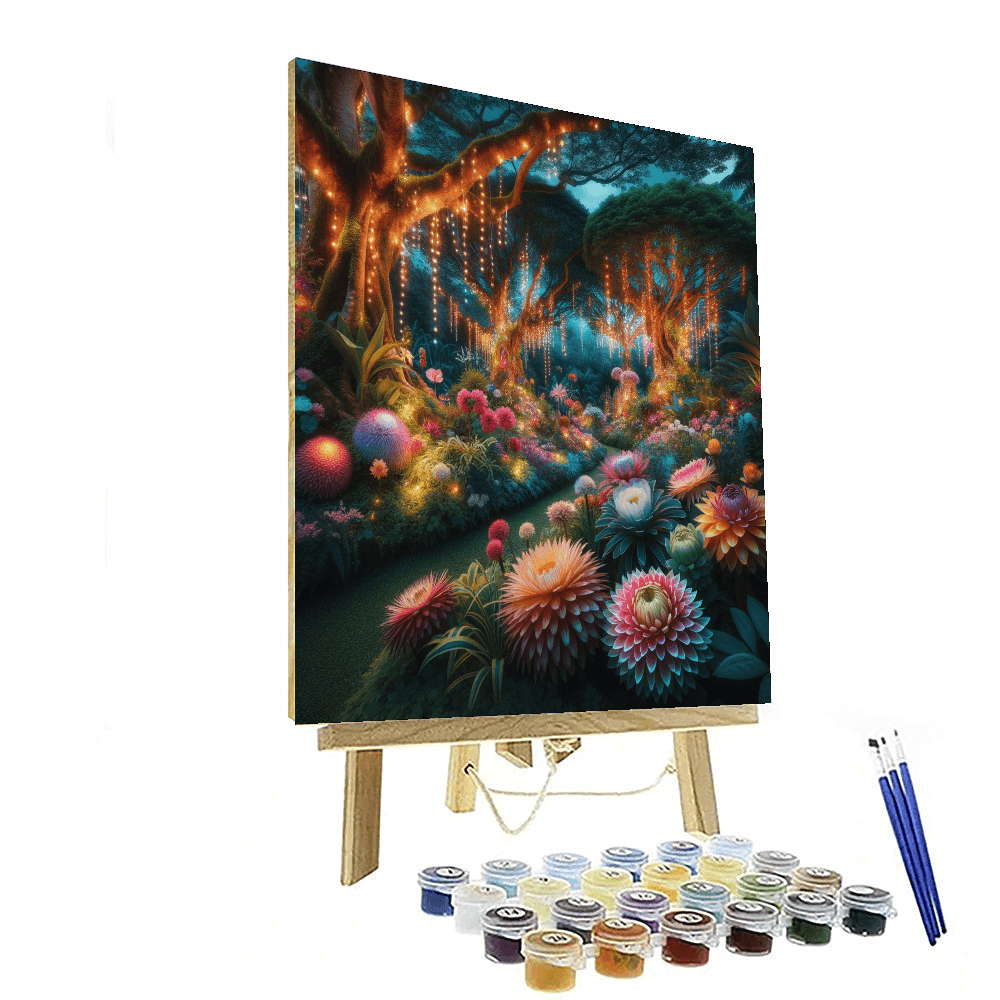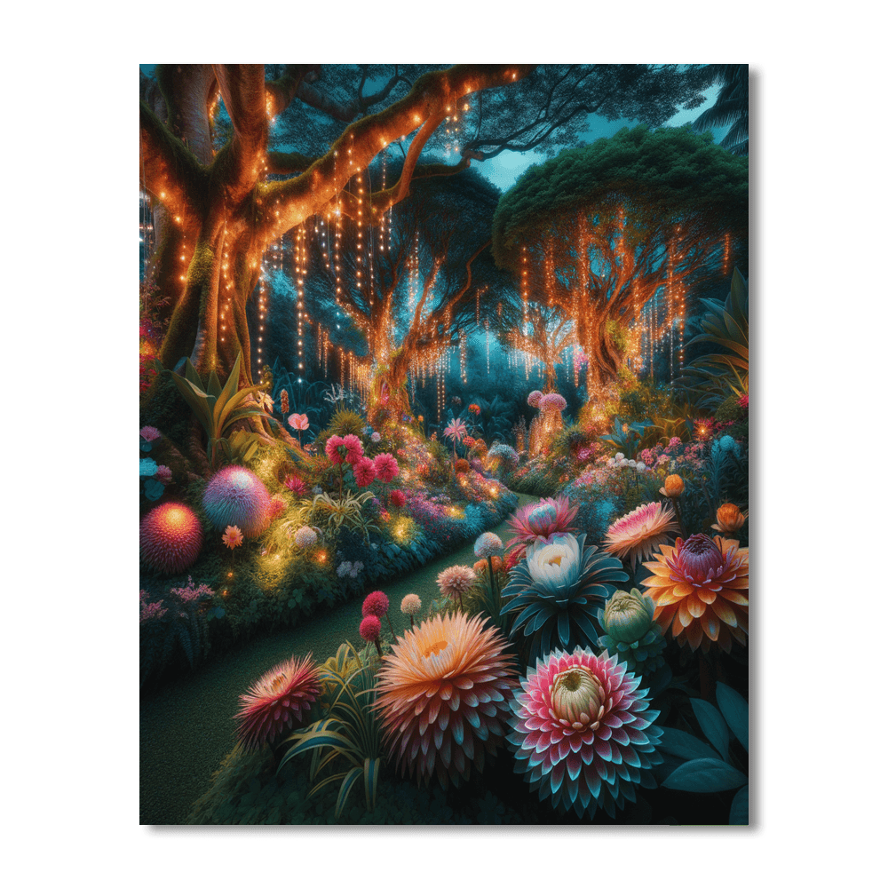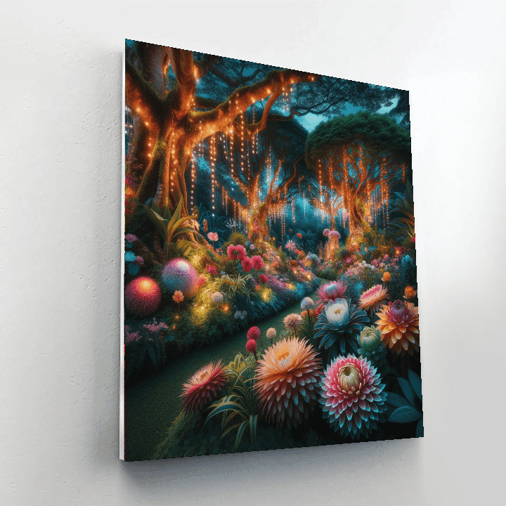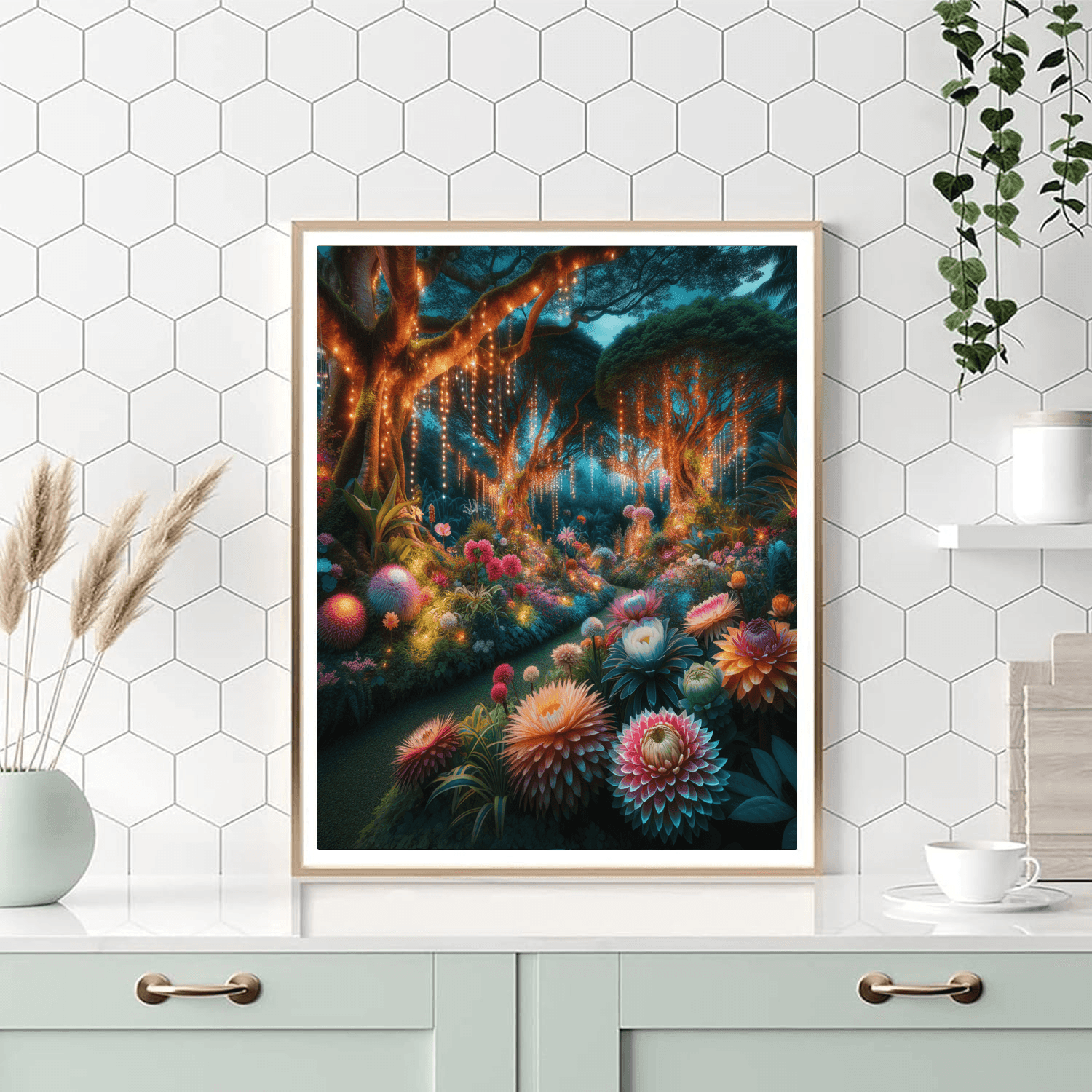 Enchanted Garden is a magical depiction of a hidden garden filled with exotic flowers and twinkling fairy lights. This mystical garden invites viewers to step into a world of wonder and enchantment, with vibrant colors and whimsical details. Ideal for childrens bedrooms or play areas, it sparks imagination and encourages a love for nature and fantasy. The lush greens and bright floral hues create a lively and joyful atmosphere, perfect for inspiring creativity and joy in young minds.