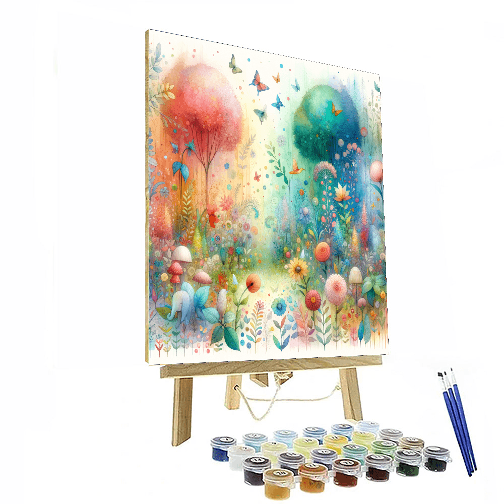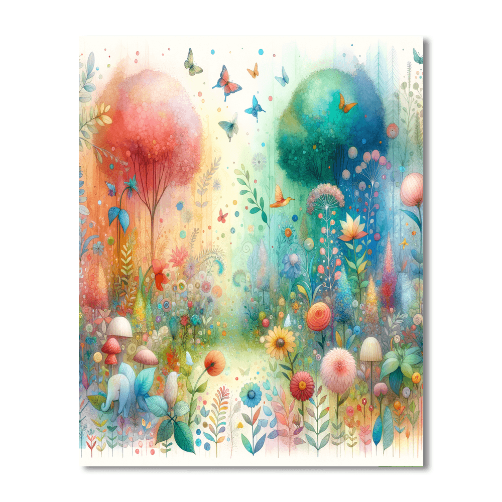 Step into the vibrant world of the Enchanted Rainbow Garden painting. Explore a garden filled with colorful flowers, fluttering butterflies, and shimmering rainbows as you paint this magical scene. Perfect for kids who love nature and bright colors, this painting will spark joy and creativity.