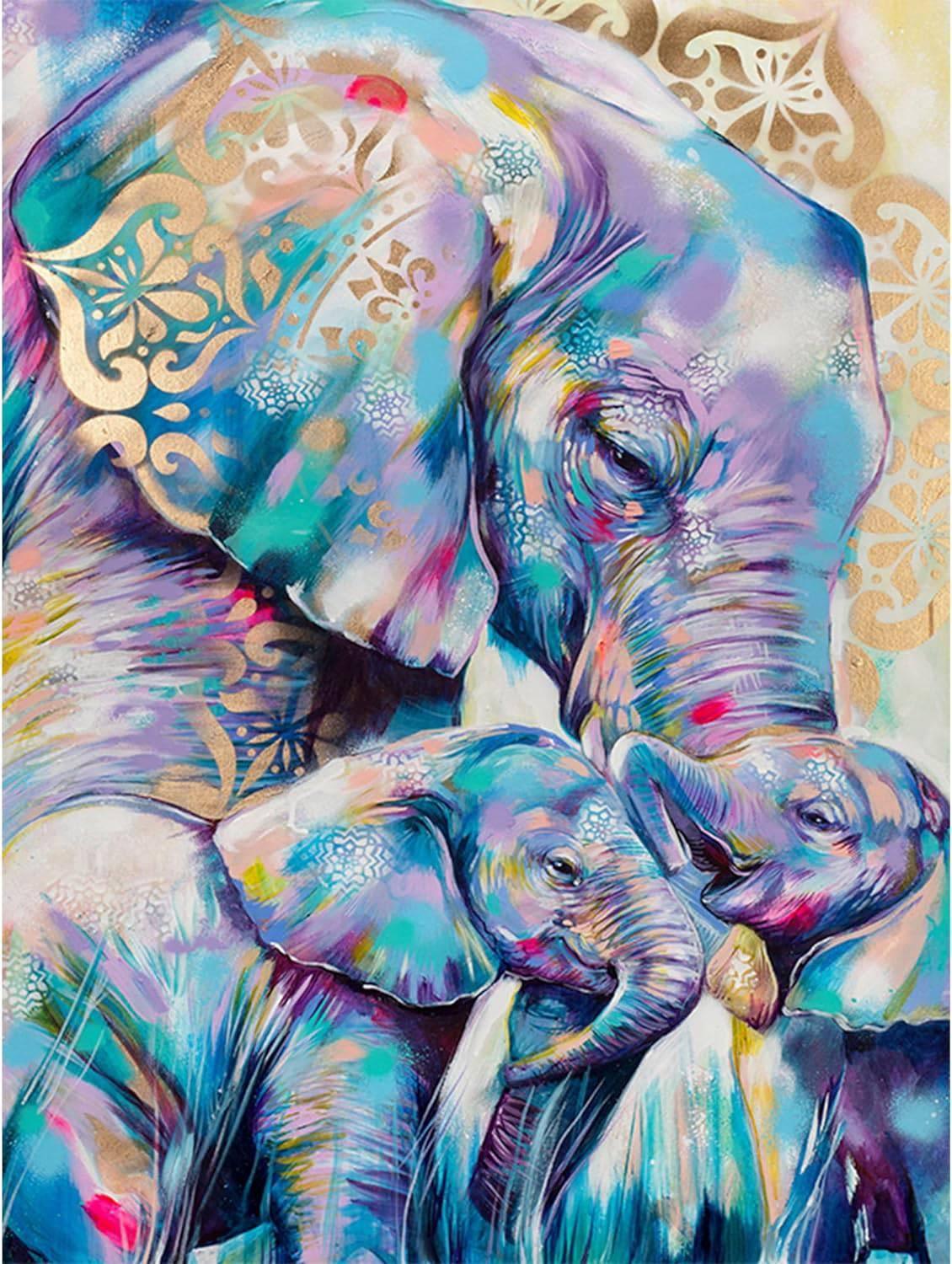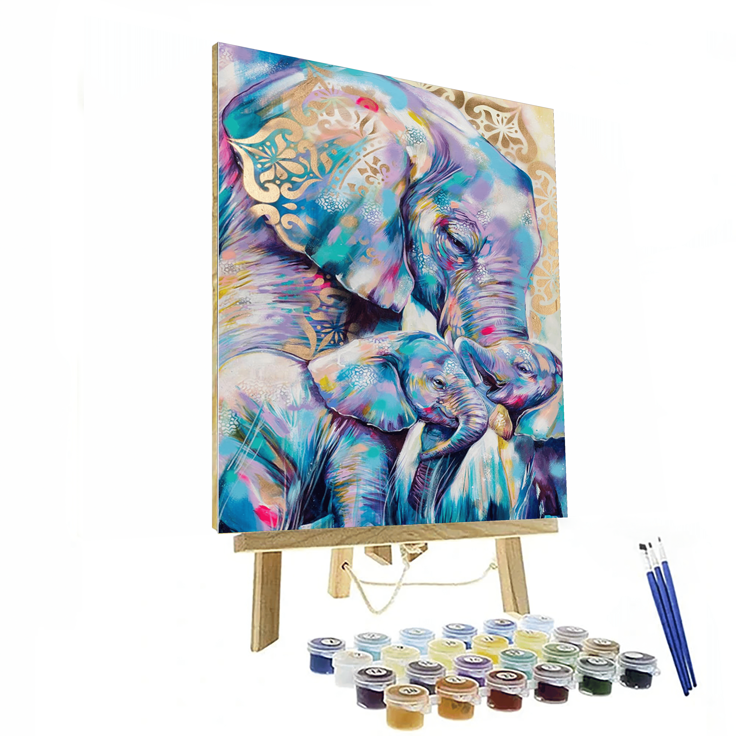 The Ethereal Elephant Paint By Numbers Kit captures the majestic presence of elephants in a kaleidoscope of vibrant hues and ornate patterns. This paint-by-numbers kit for adults and children is an artistic endeavor that celebrates the grandeur of wildlife through a burst of color and imaginative design, ideal for crafting a standout piece of art for any room or as a thoughtful gift.