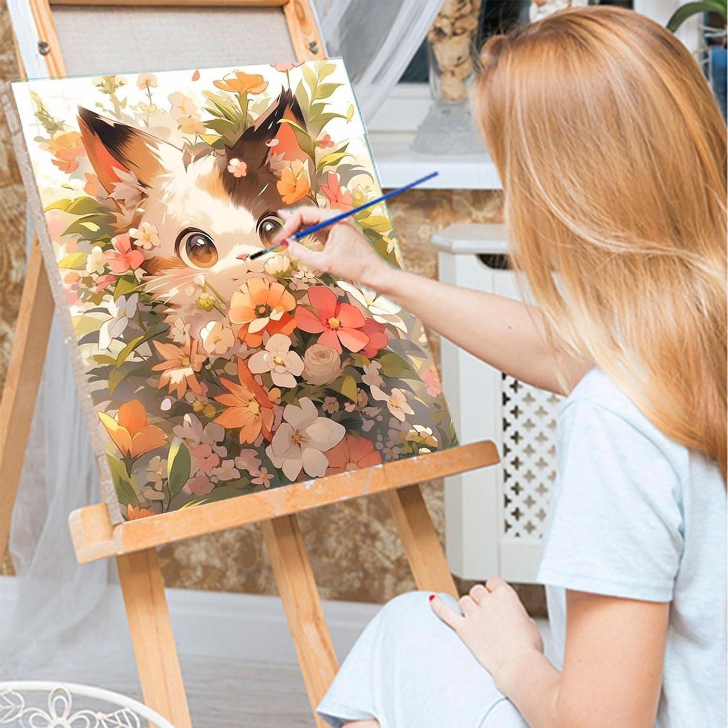 Discover the enchanting fusion of nature and whimsy with the Feline Flora Paint By Number Kit. This artistic journey invites you to bring to life a serene kitten enveloped in a lush, floral wonderland, echoing the delicate balance between wildlife and the blooming world.