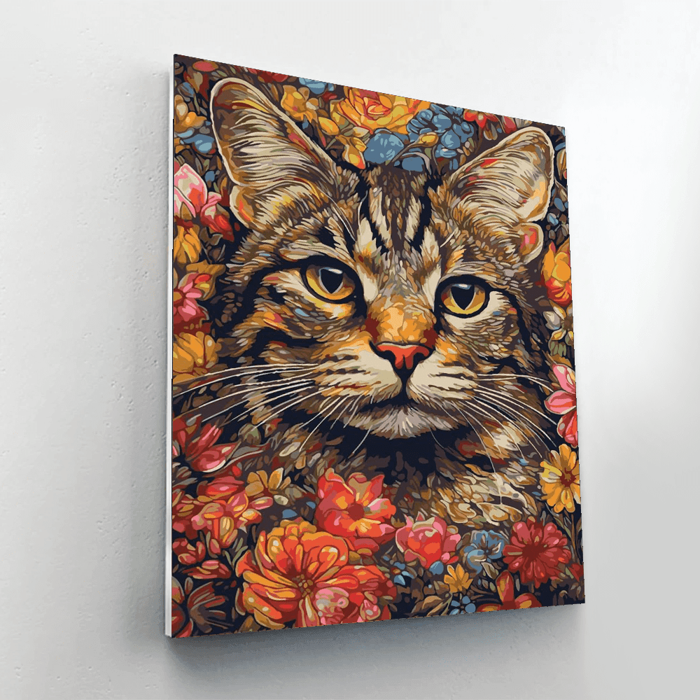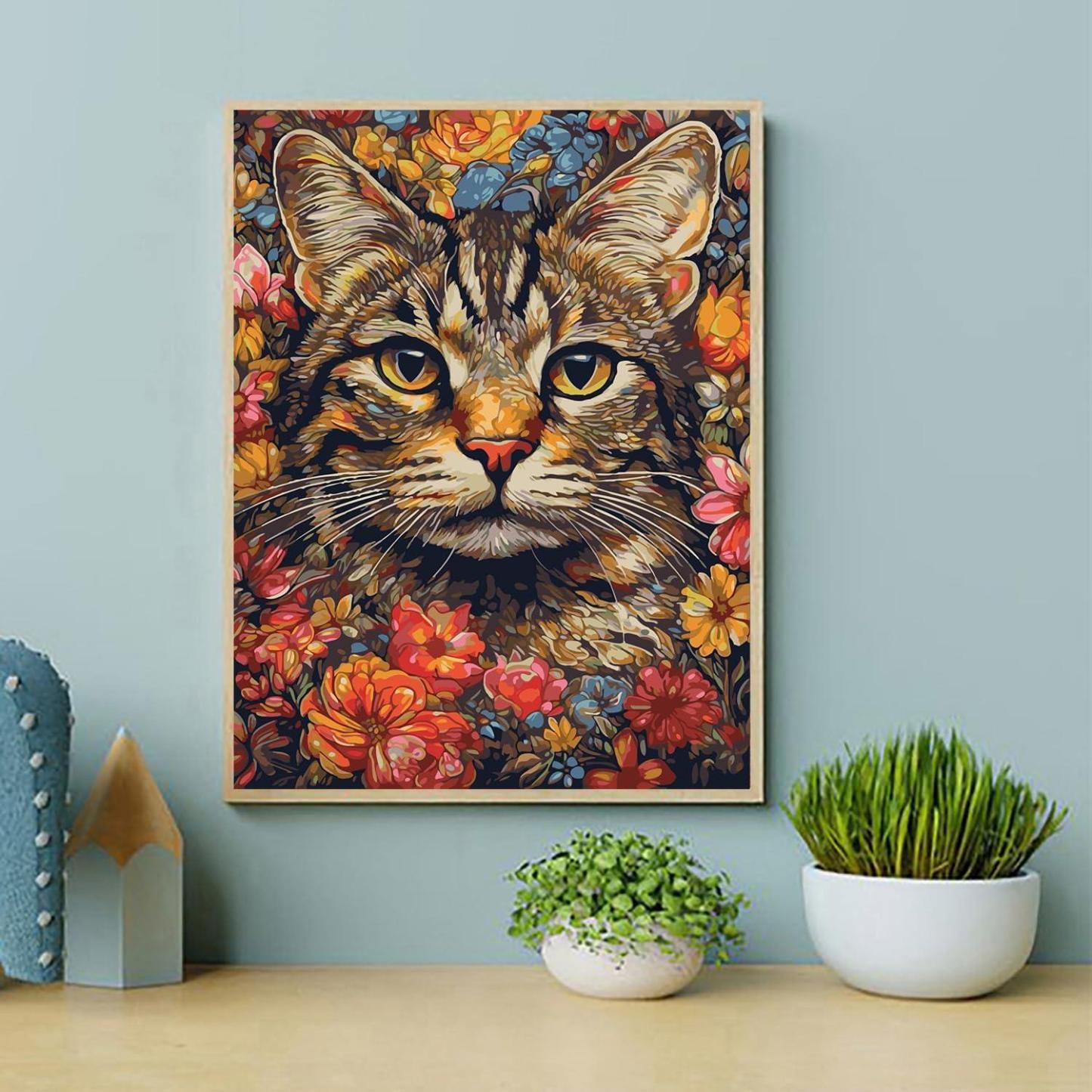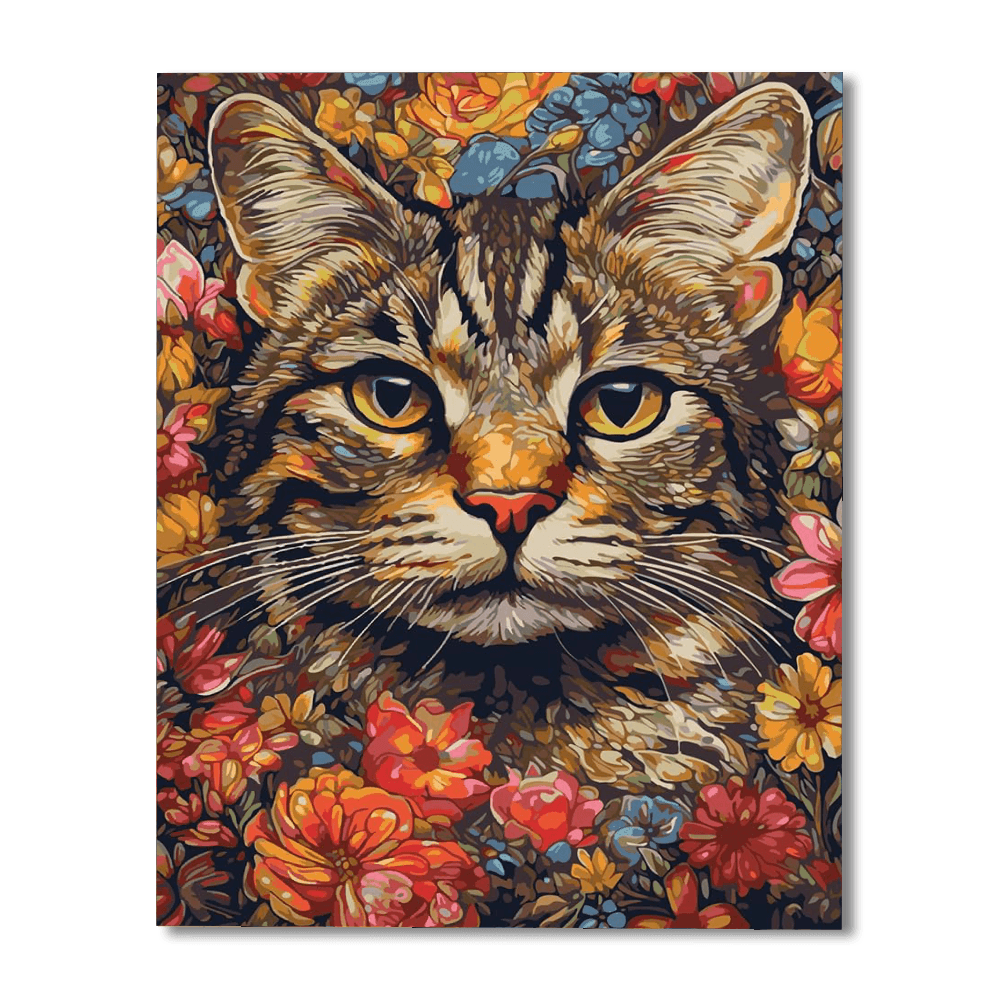 The Floral Feline Paint By Number Kit offers a charming artistic experience that infuses your space with vibrancy. This design features a majestic feline amidst a riot of floral beauty, perfect for those who appreciate nature's splendor and the serene presence of a contemplative animal.