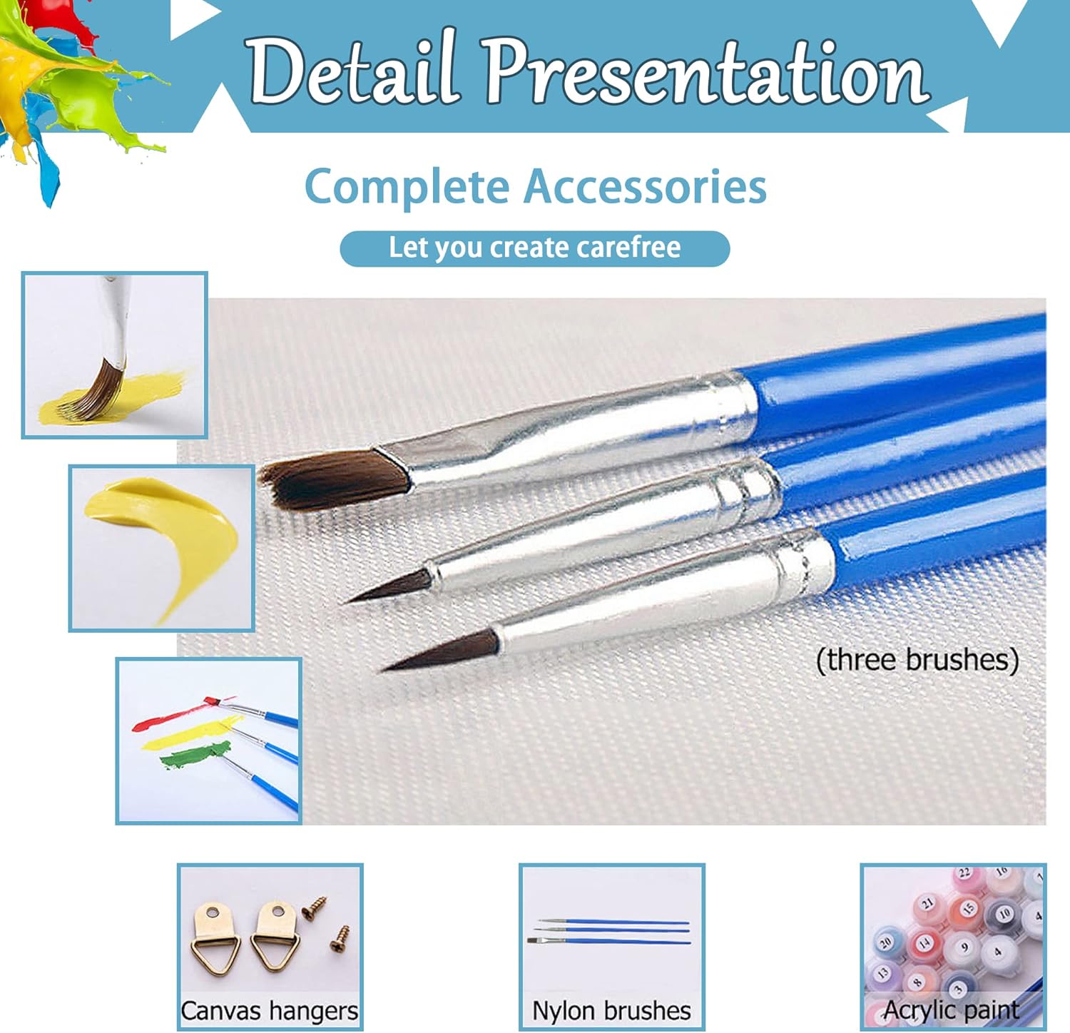 This craft kit features a substantial 16x20-inch painting canvas, allowing for a detailed and immersive painting experience.