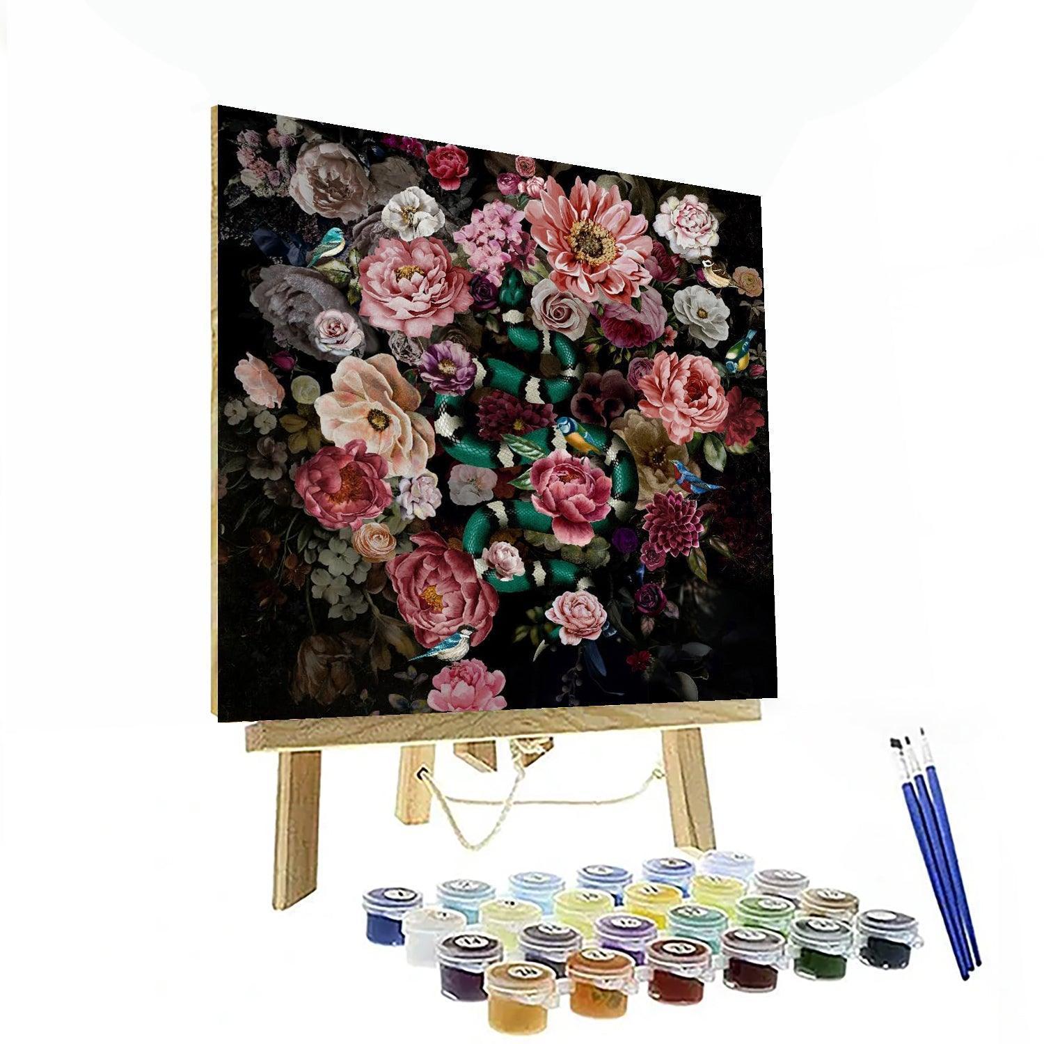 In this Paint-by-Numbers set, the square 24x24 inch canvas presents a magnificent floral design waiting to be animated with color. Each flower, from the smallest bud to the fullest bloom, is detailed to guide you to a finished piece that celebrates the natural beauty of a floral bouquet.