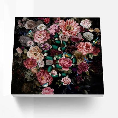 Shape: A square canvas provides a balanced composition that showcases the full beauty of the floral arrangement.