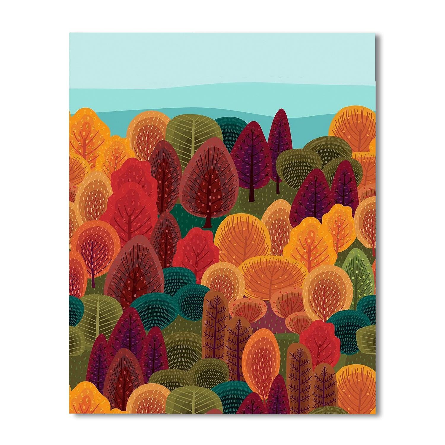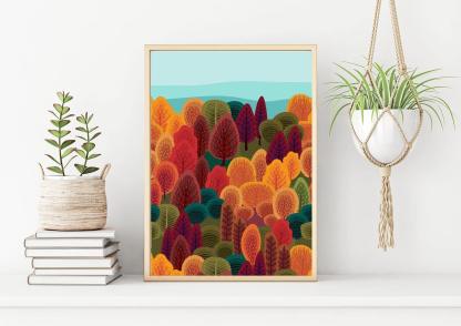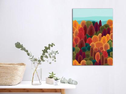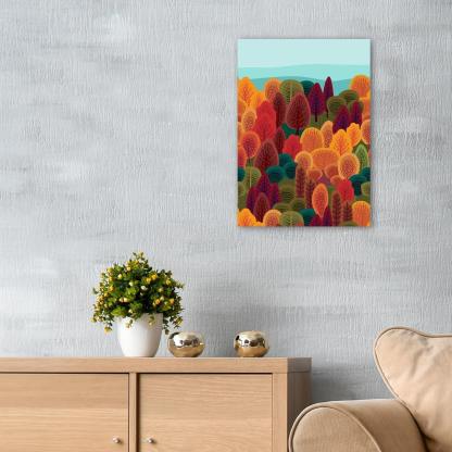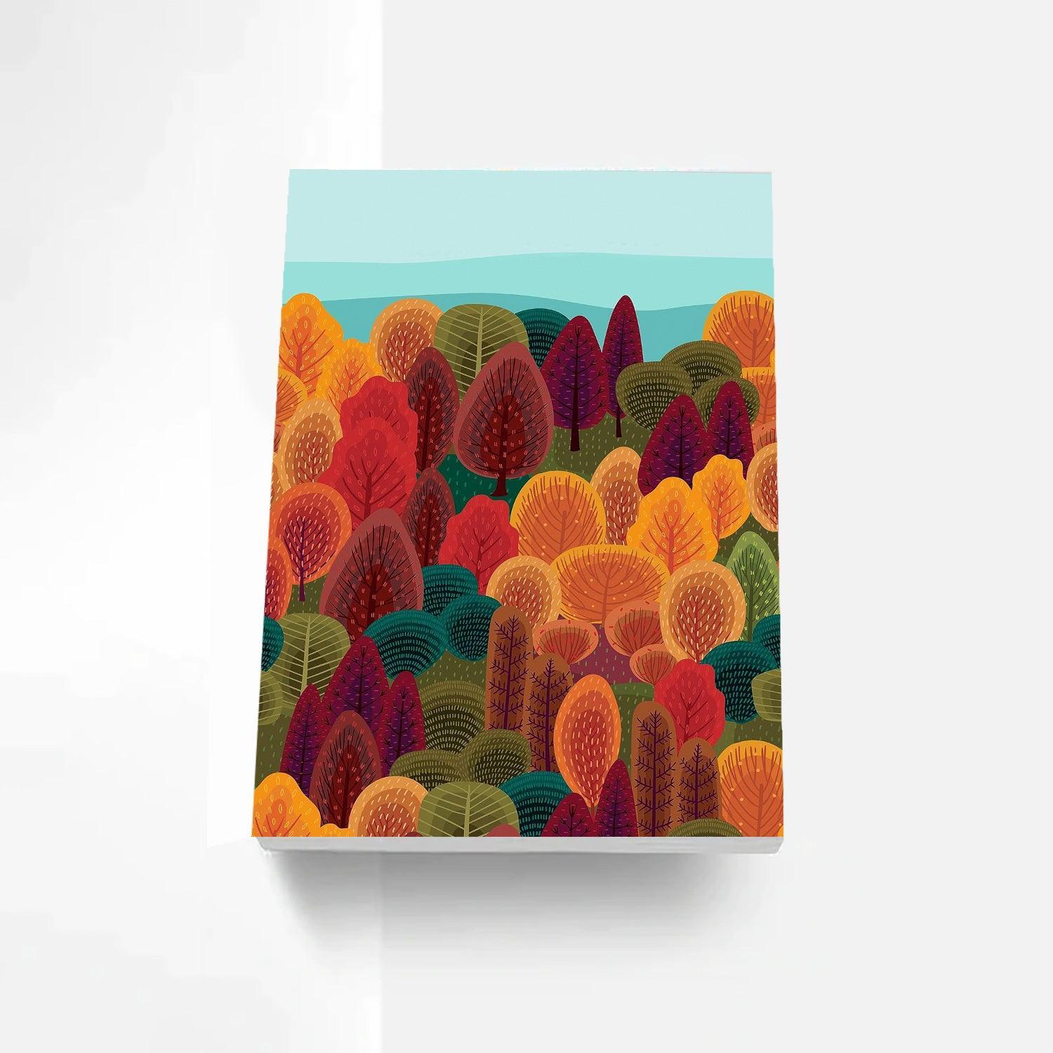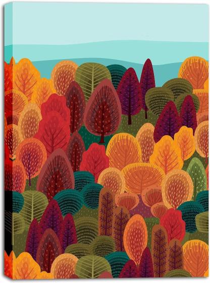 Pattern: The canvas comes alive with a pattern of stylized trees, each with its own unique design, simulating the rich diversity of a forest in autumn.