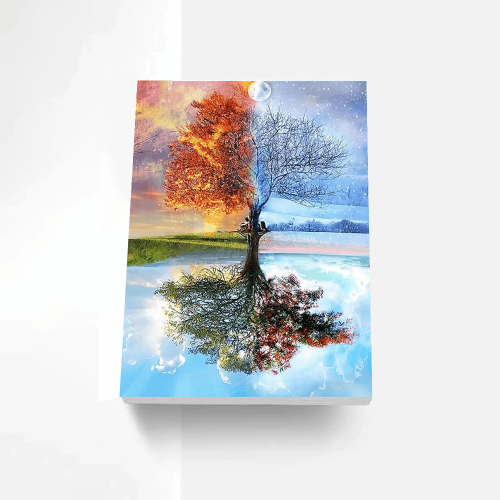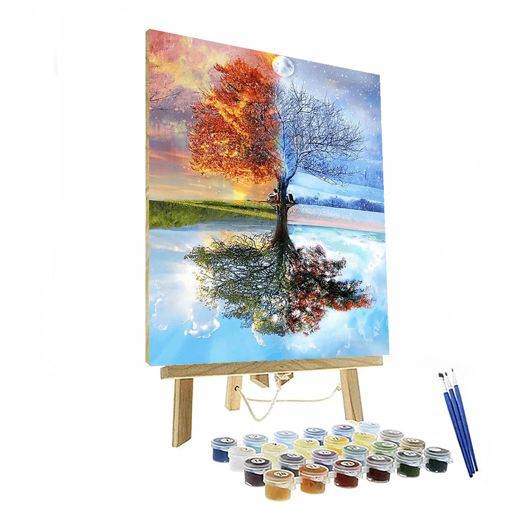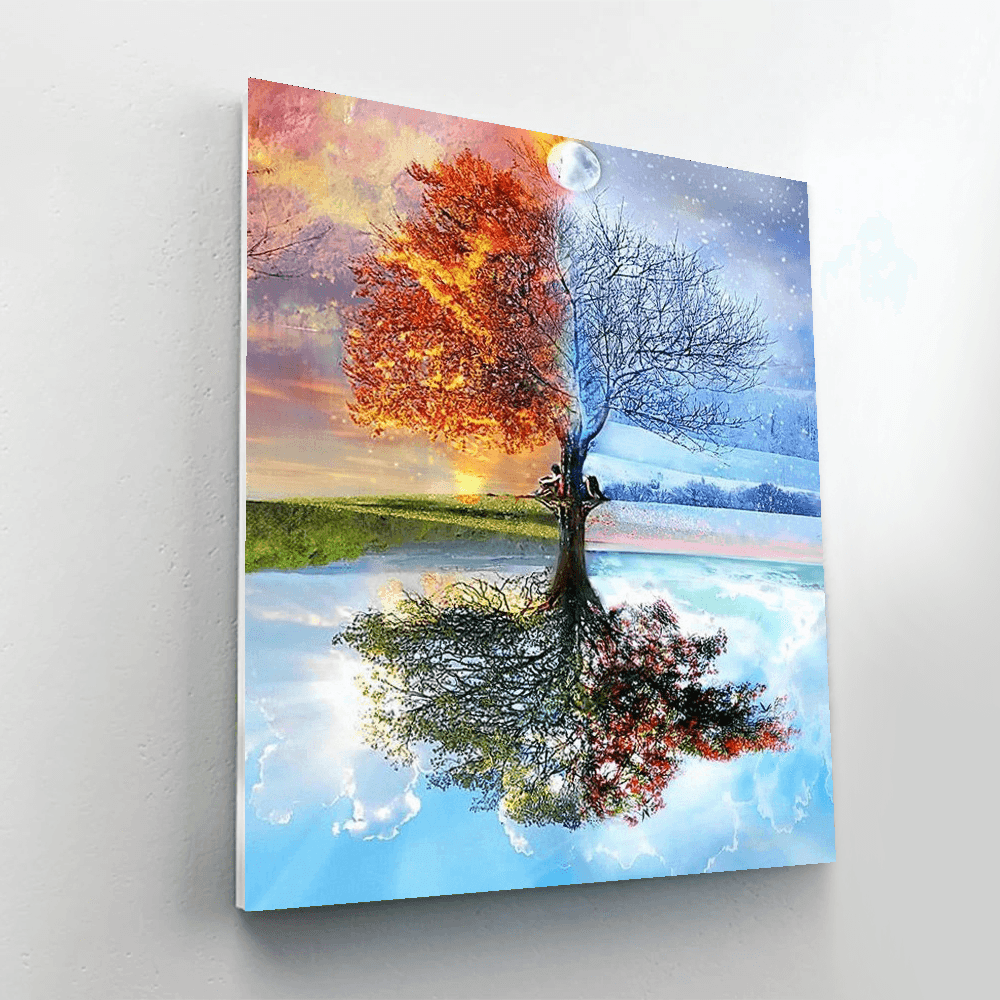 Four Seasons Tree Paint By Numbers Painting is a kit that allows you to paint by numbers, for adults and children alike. Kids will love this new and creative paint-by-numbers kit. They will have hours of fun and creative play as they create their own custom masterpiece of four seasons tree. The kit includes a pre-printed canvas, a paintbrush, and a paint palette. This product is great for ages 4 and up.
