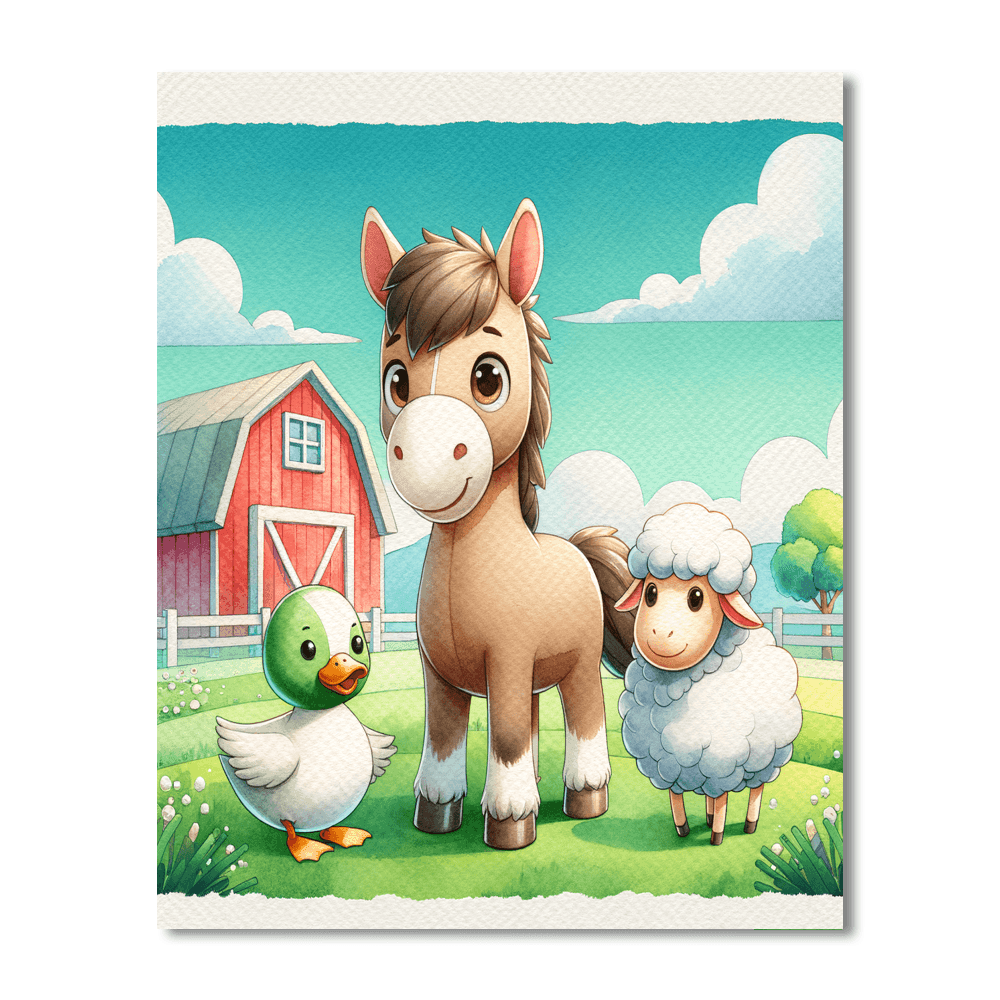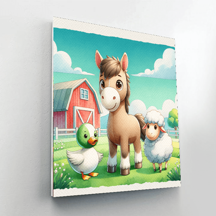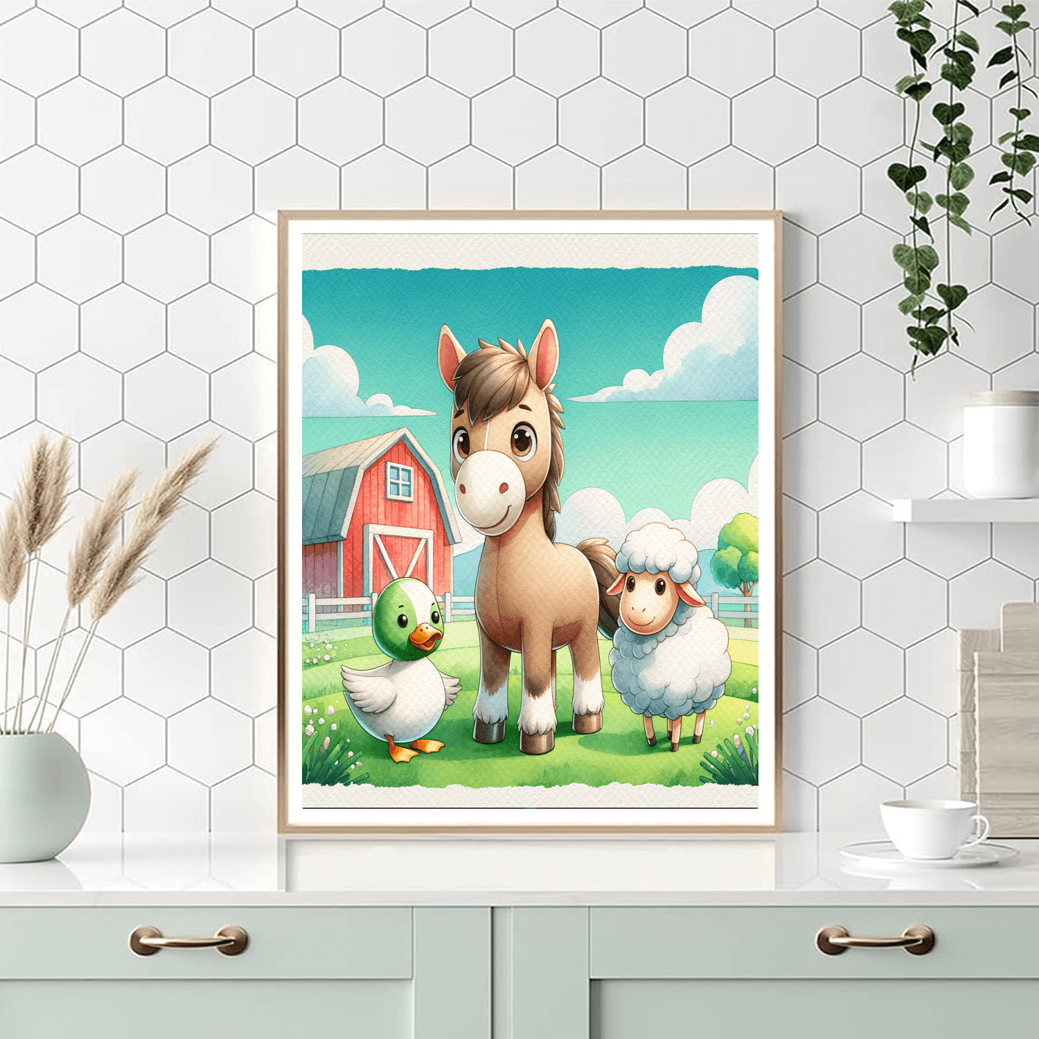 Visit a friendly farmyard with this kit featuring a horse, a sheep, and a duck. This charming scene is perfect for young animal lovers and can be displayed in a childs bedroom or playroom.