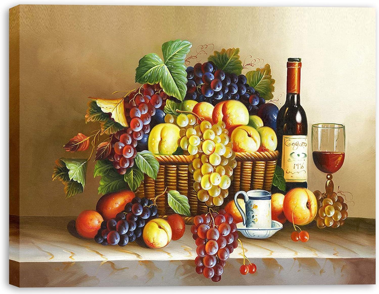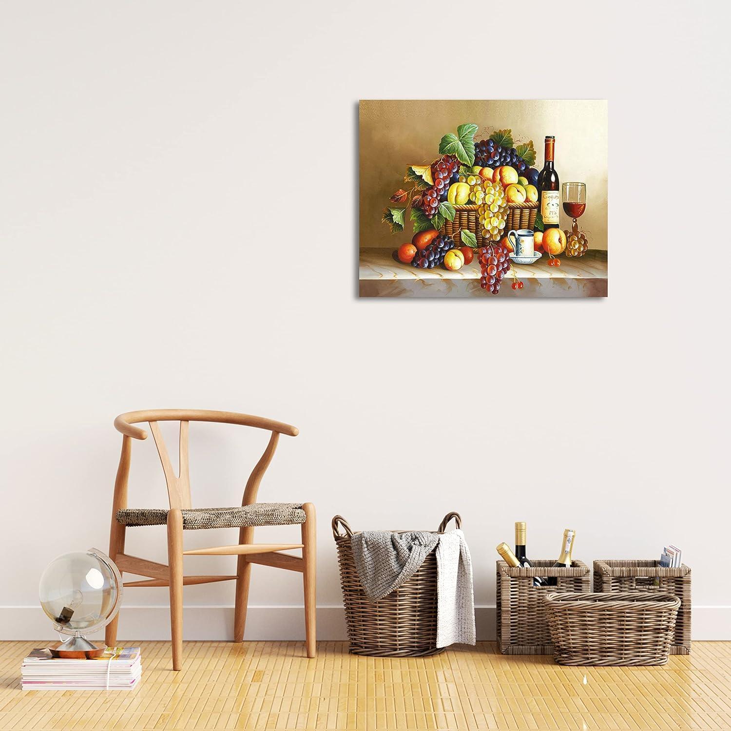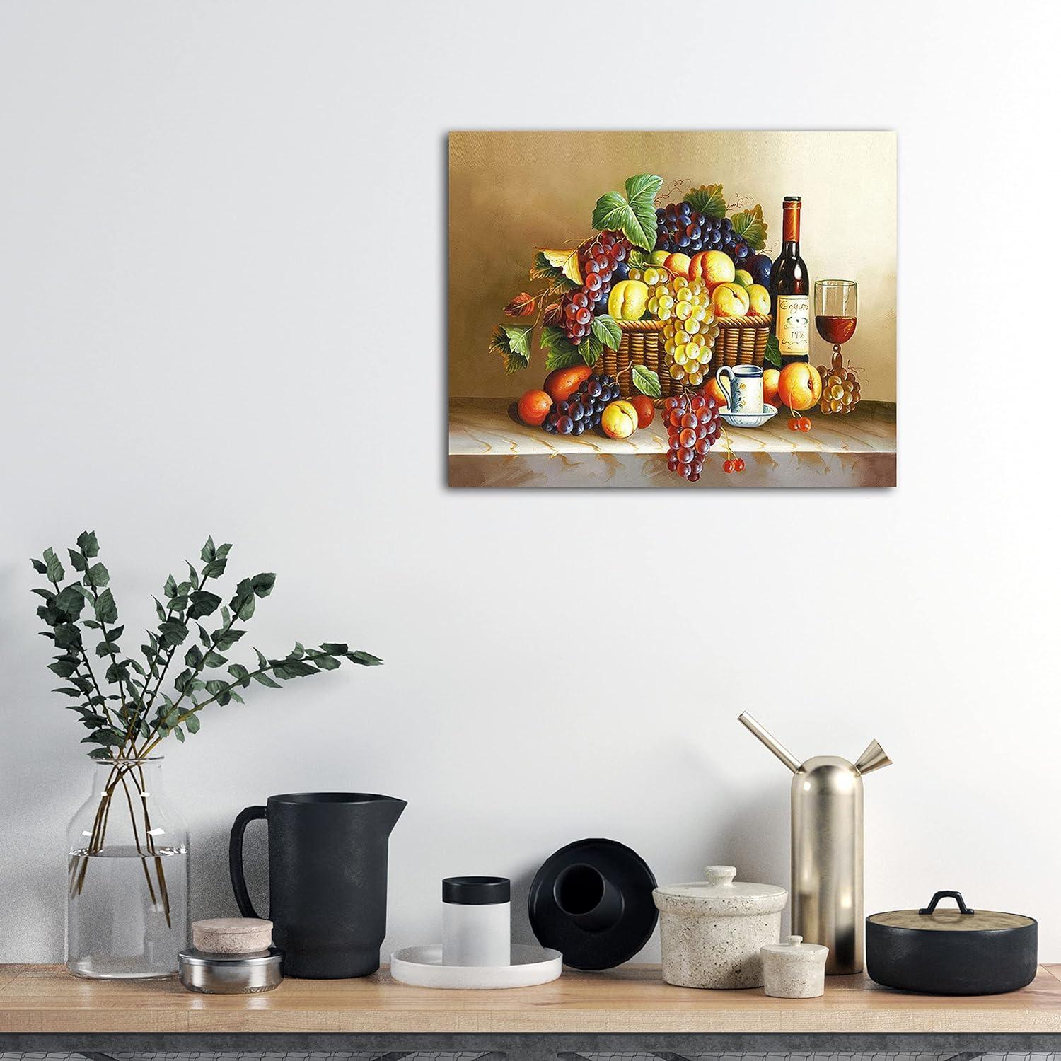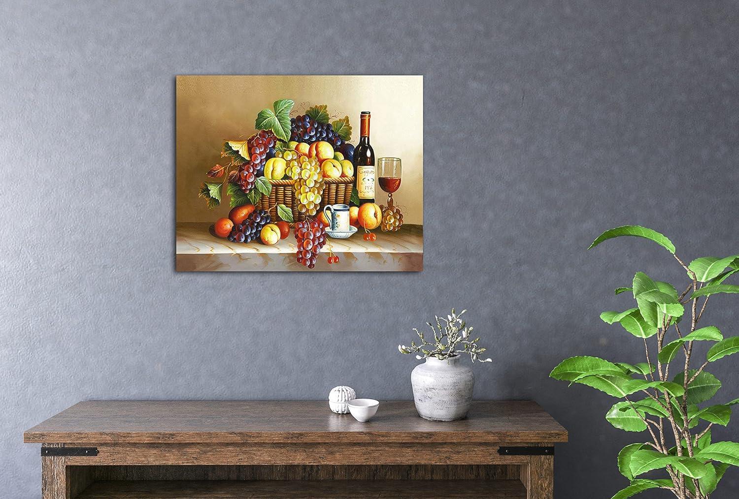• Pattern: Depicts a richly detailed still life scene with assorted fruits and wine, inviting a classical touch to any space.