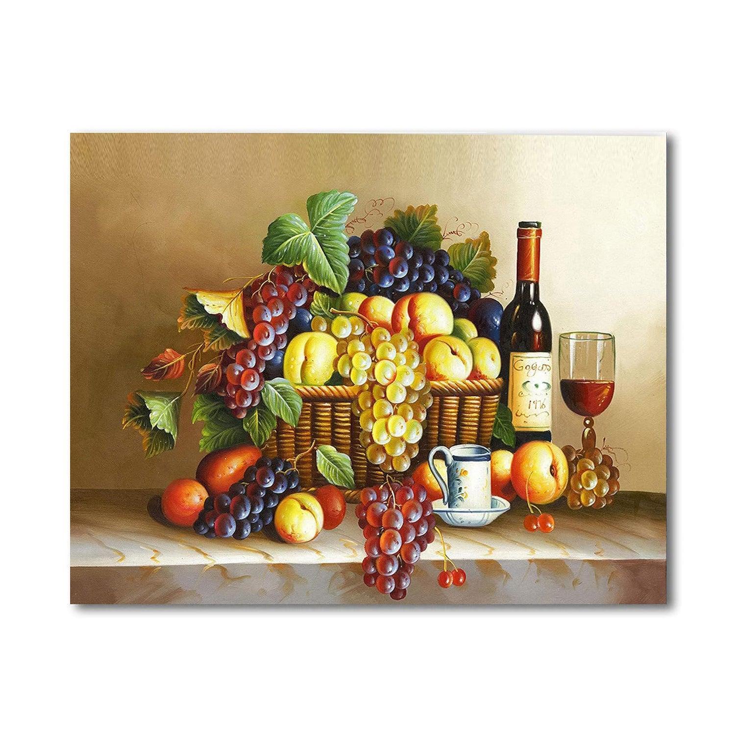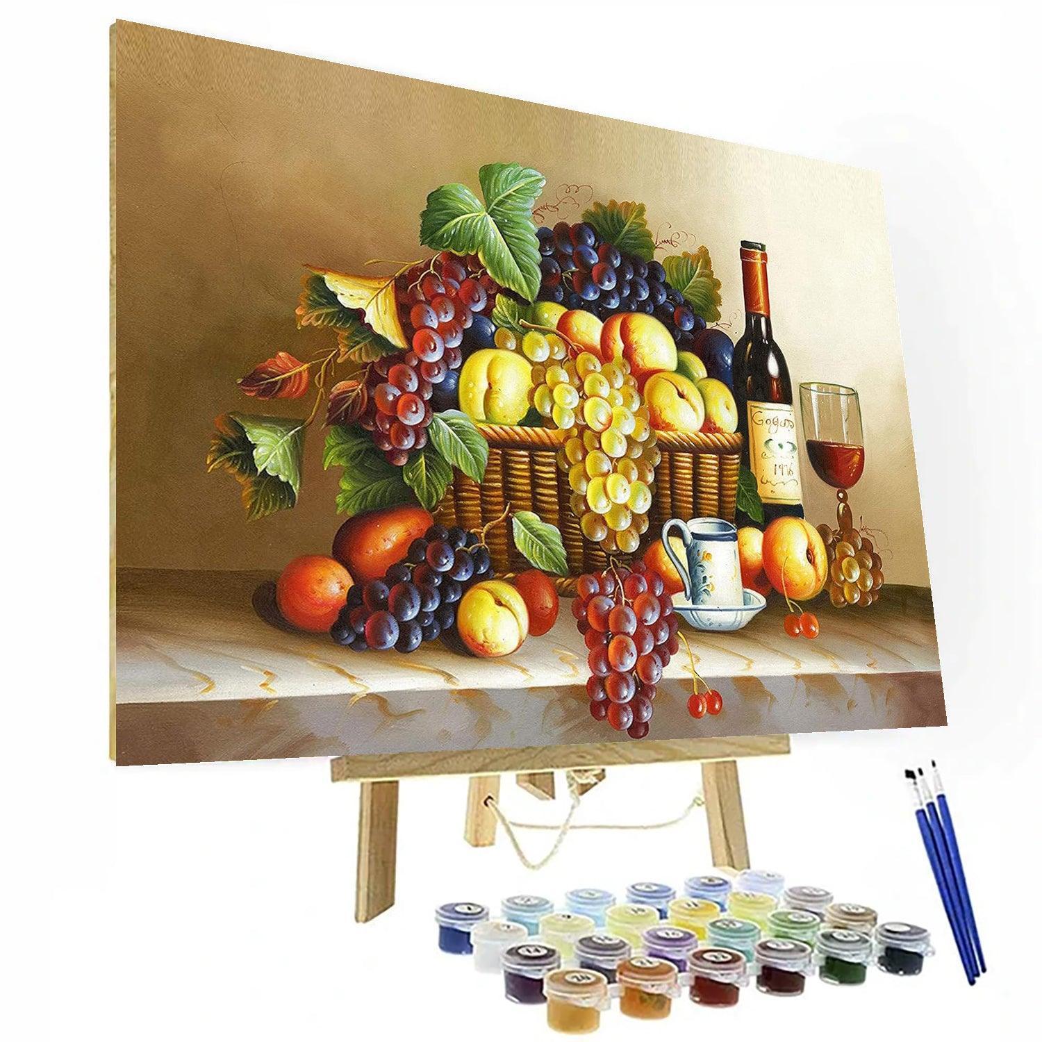 Enhance your painting skills while enjoying this Fruit Basket Paint By Numbers Kit. This kit includes a pre-printed canvas featuring a classic still life of fruit and wine, allowing you to easily create a timeless masterpiece. Enjoy the benefits of painting and the satisfaction of completing a beautiful work of art.