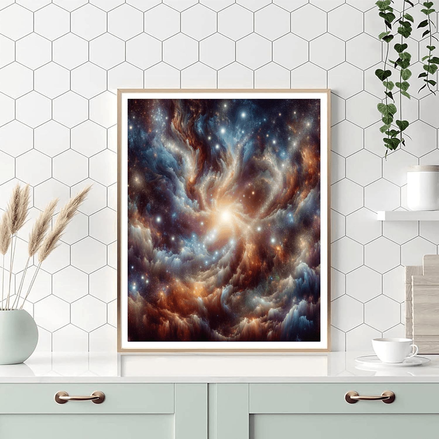 Embark on a cosmic journey with Galactic Dreamscape Odyssey. This mesmerizing artwork takes you on a voyage through the vast expanse of space, where galaxies swirl and stars twinkle in an endless dance of light. The cosmic colors and celestial patterns create a sense of awe and wonder, immersing you in a dreamy and otherworldly experience. Perfect for adding a touch of cosmic beauty to your space, this artwork will ignite your imagination and spirit of exploration.