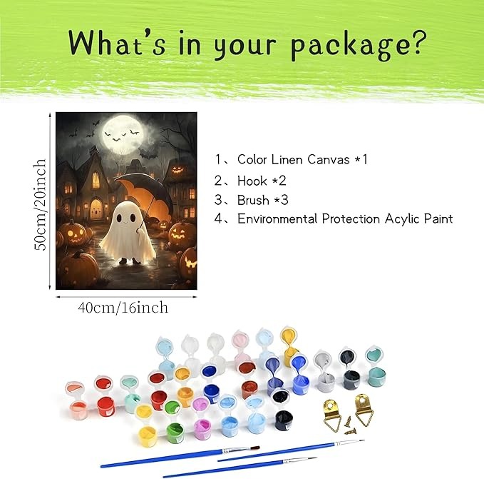 The Rainy Halloween Village Painting kit is a complete DIY project designed for adults who appreciate art and seasonal themes. It combines a festive Halloween design with the satisfaction of creating a finished canvas.