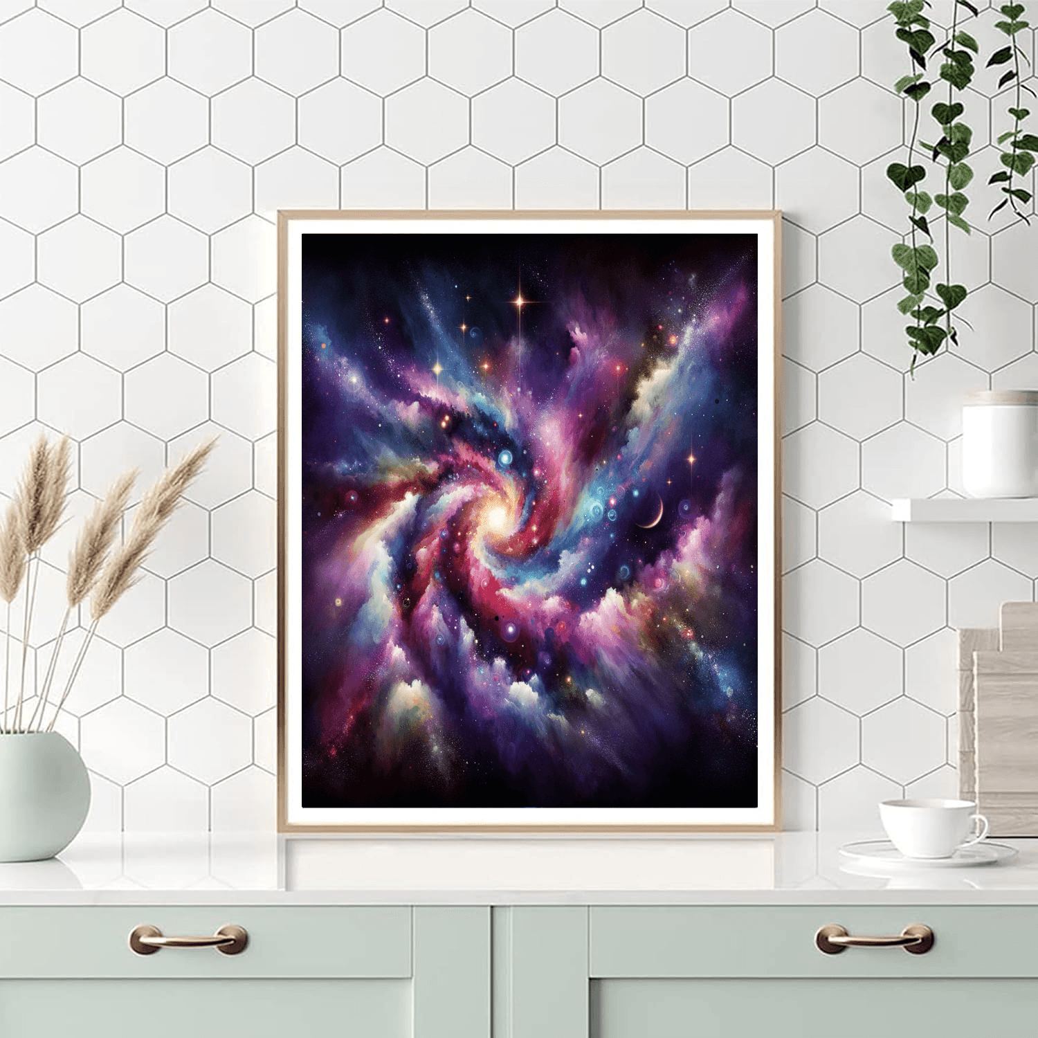 Explore the wonders of space with the Glowing Galaxy! This captivating product features a colorful galaxy filled with stars and planets. Its perfect for kids aged 5-14, promoting creativity and a love for astronomy. This delightful piece can be displayed in a childs bedroom, creating a magical atmosphere for bedtime.