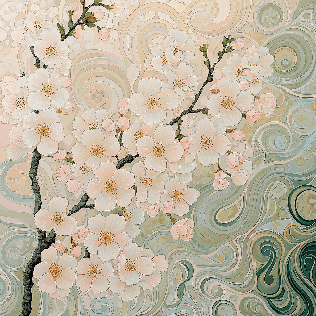 Bring the tranquility of nature indoors with this serene depiction of blooming flowers. Perfect for a bedroom or meditation space, this artwork creates a calming atmosphere that encourages relaxation and mindfulness. Its gentle colors and soft forms invite viewers to reflect on the beauty of the natural world. Ideal for anyone looking to add a touch of elegance and peace to their home, this piece will inspire creativity and appreciation for nature.