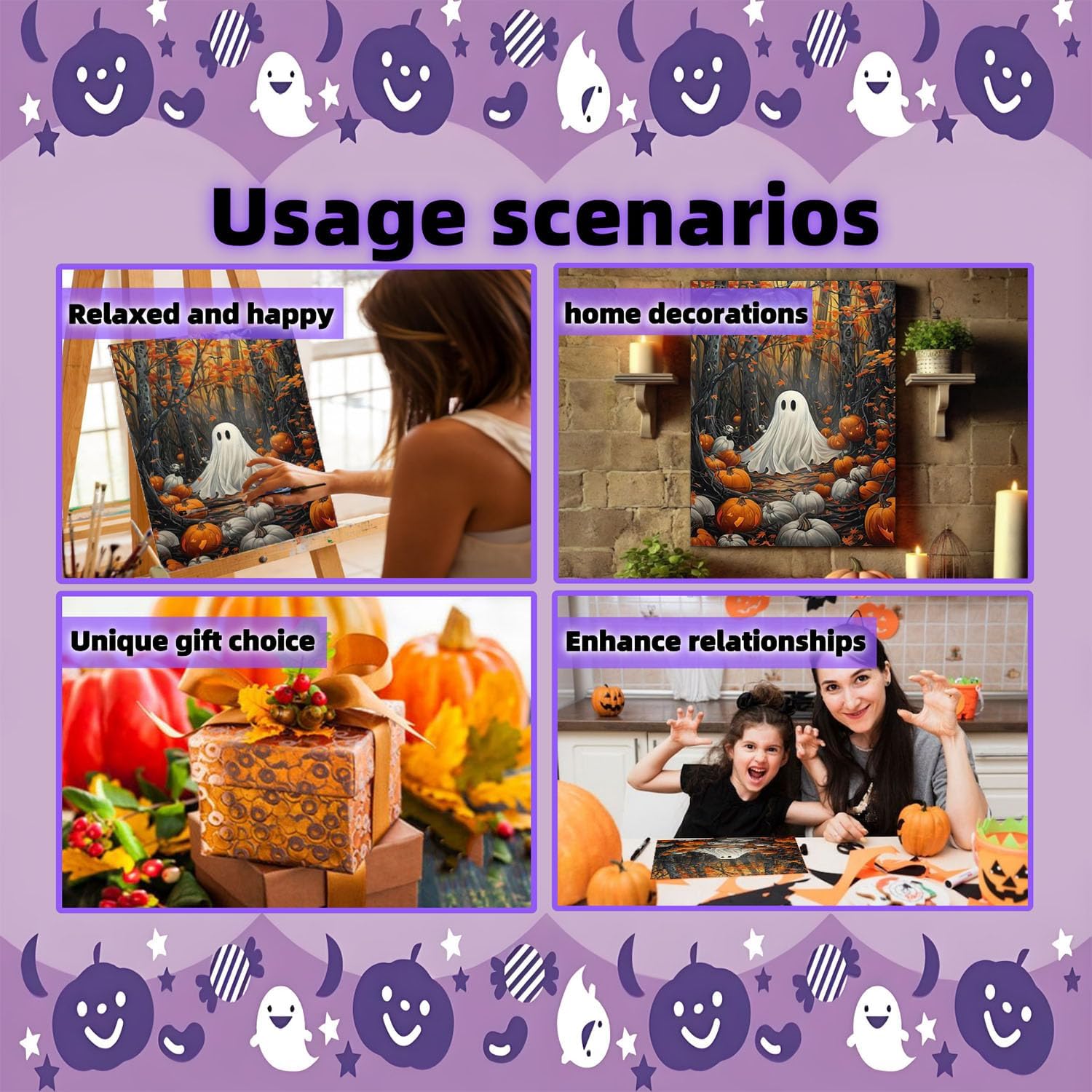 Once complete, your canvas becomes a Paint by Numbers piece that adds Halloween charm to your décor. Hang it in your living room, entryway, or office to set the seasonal mood. It can also be given as a handmade gift, offering a personal and artistic touch.