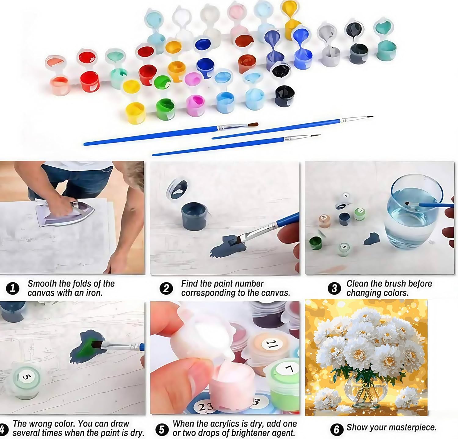 This Halloween Paint by Numbers Kit includes a pre printed canvas, vibrant acrylic paints, and brushes in various sizes. The numbering system ensures beginners can follow along easily, while hobby painters have room to experiment with blending and shading.