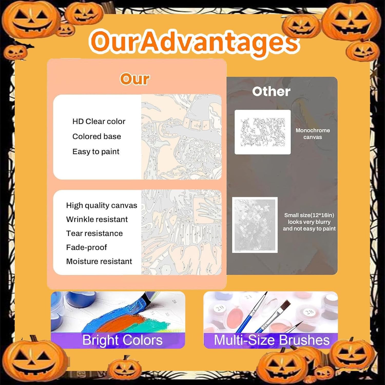 The included acrylic paints are rich and vibrant, designed to provide smooth coverage on the textured canvas. No blending is required, and one coat easily covers the numbers. This ensures your Halloween pumpkin design looks clean and bright.