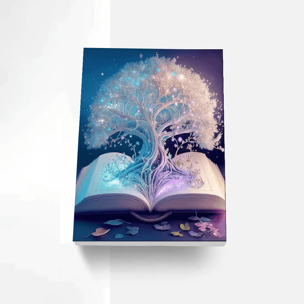 Pattern: Presents an intricate tree growing from an open book, symbolizing growth and knowledge.